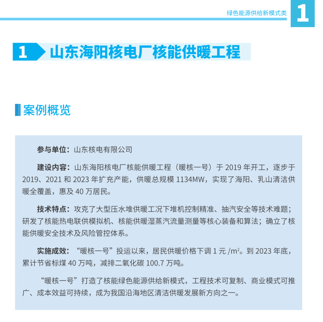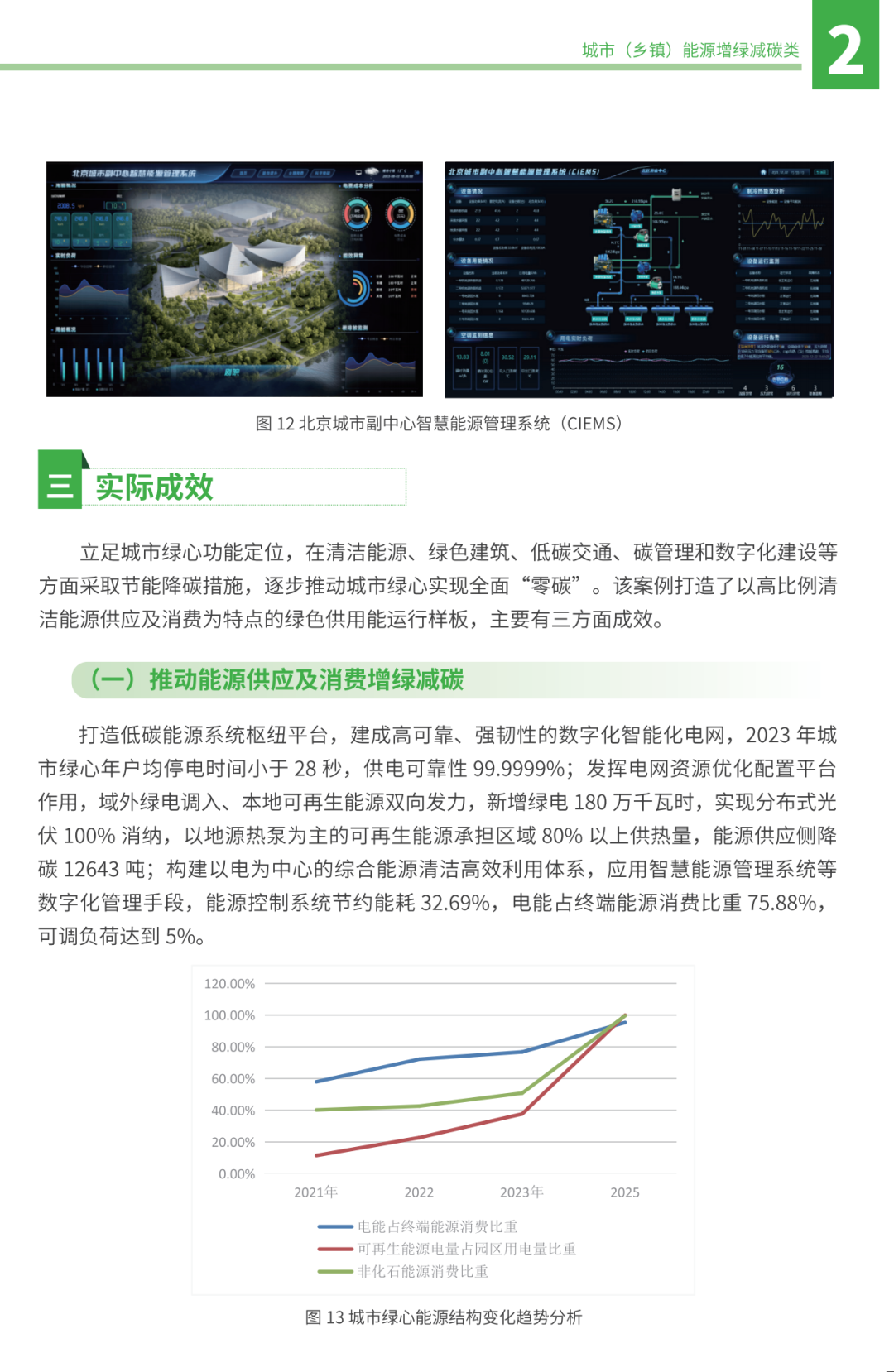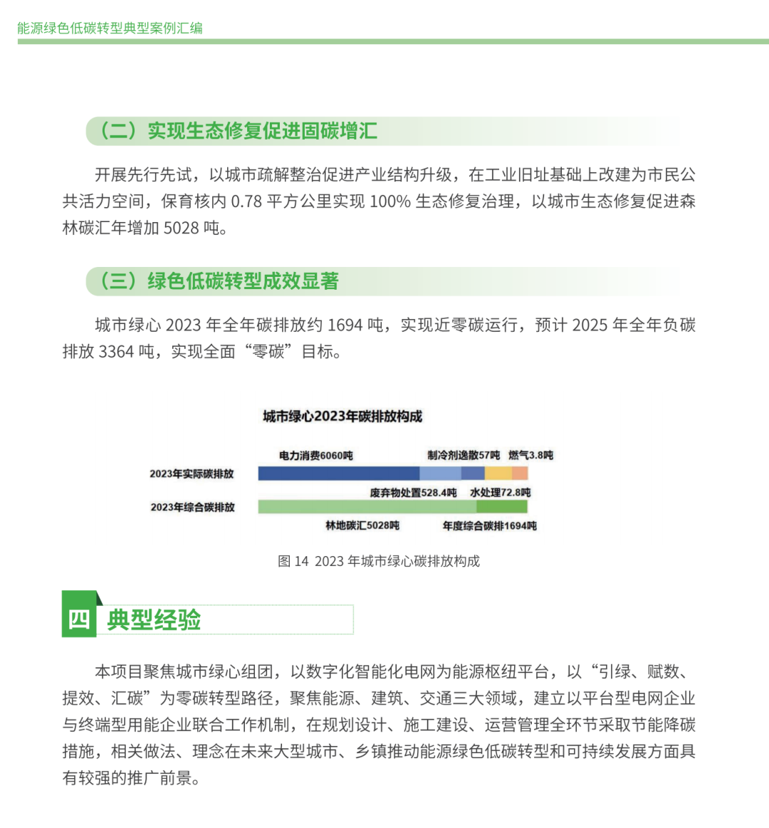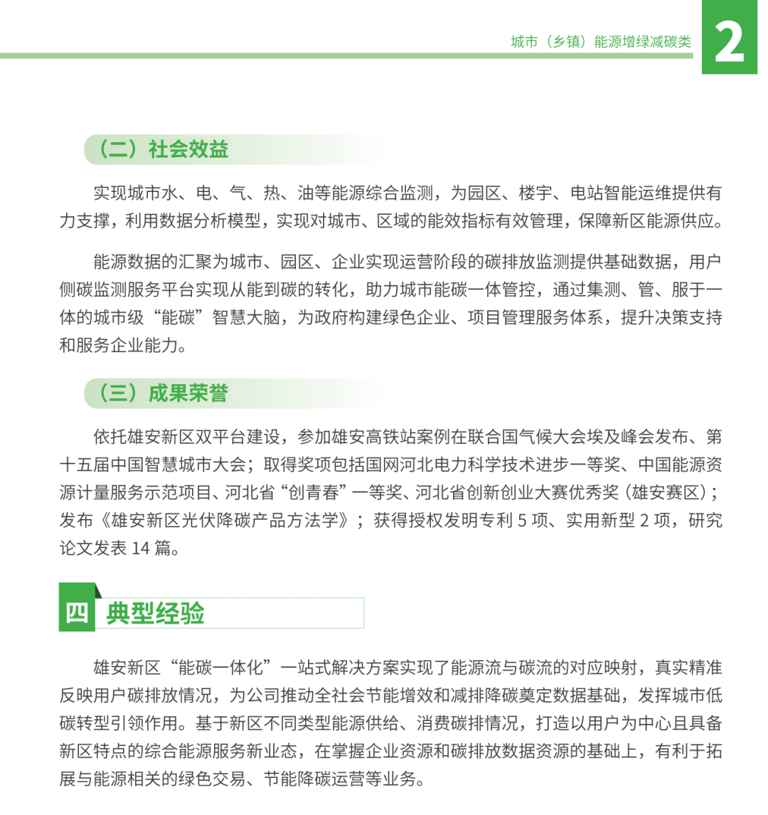 《能源绿色低碳转型典型案例汇编》系统展示了绿色能源供给新模式、城市(乡镇)能源增绿减碳、能源产业链碳减排、用能企业(园区)低碳转型等4类共23个典型案例的基本情况、做法实践、技术特点、实际成效等,旨在为不同领域能源绿色低碳转型提供有益的经验借鉴和实践参考。