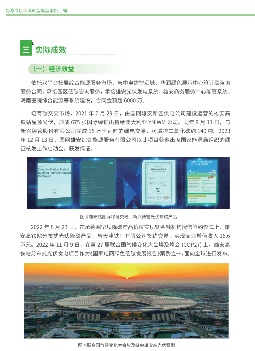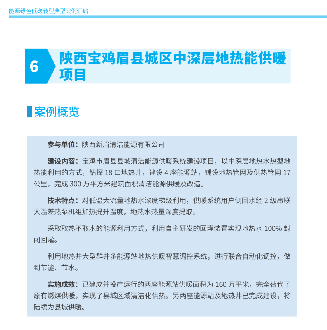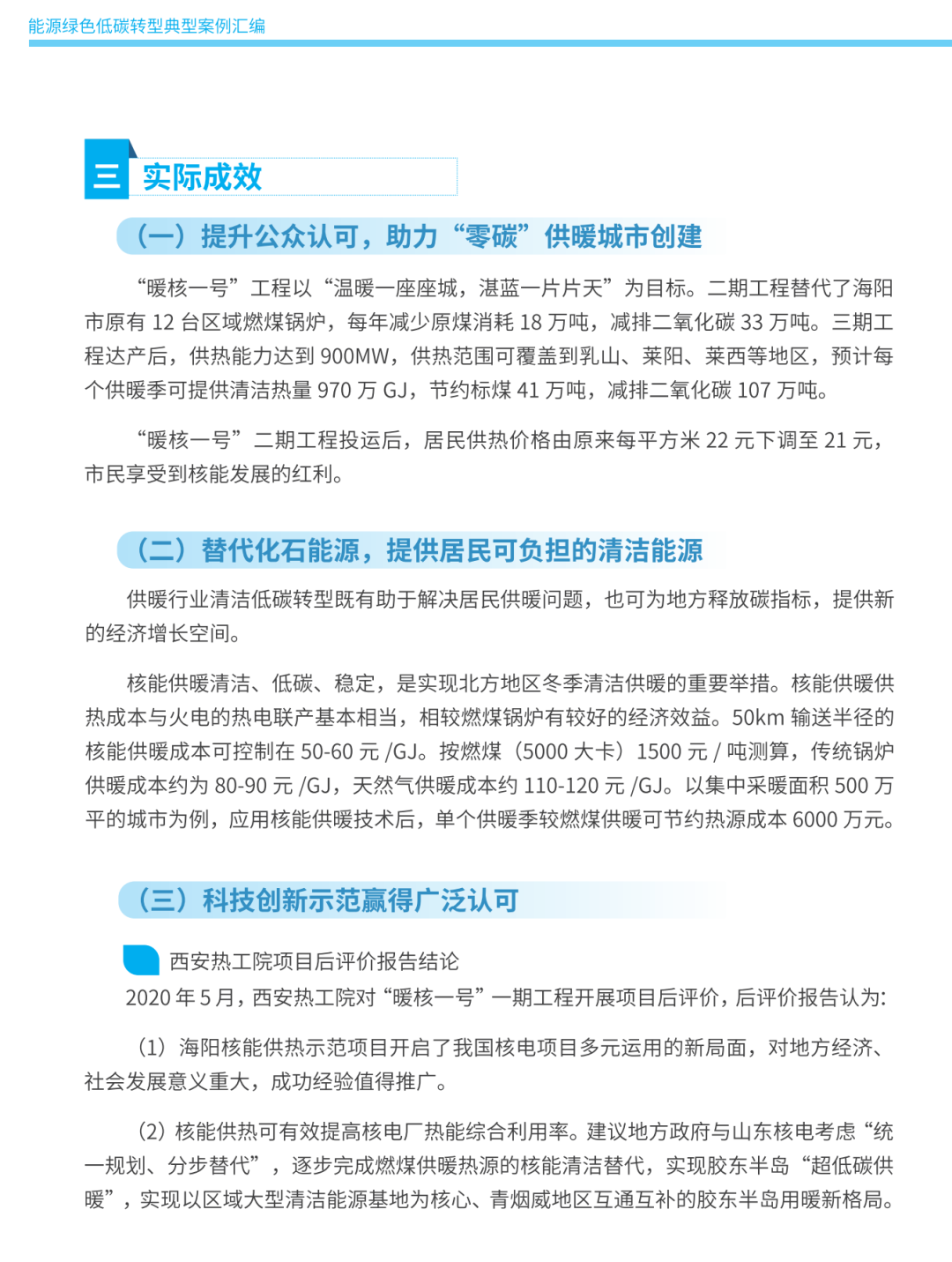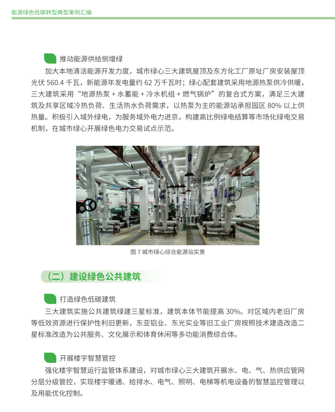 《能源绿色低碳转型典型案例汇编》系统展示了绿色能源供给新模式、城市(乡镇)能源增绿减碳、能源产业链碳减排、用能企业(园区)低碳转型等4类共23个典型案例的基本情况、做法实践、技术特点、实际成效等,旨在为不同领域能源绿色低碳转型提供有益的经验借鉴和实践参考。