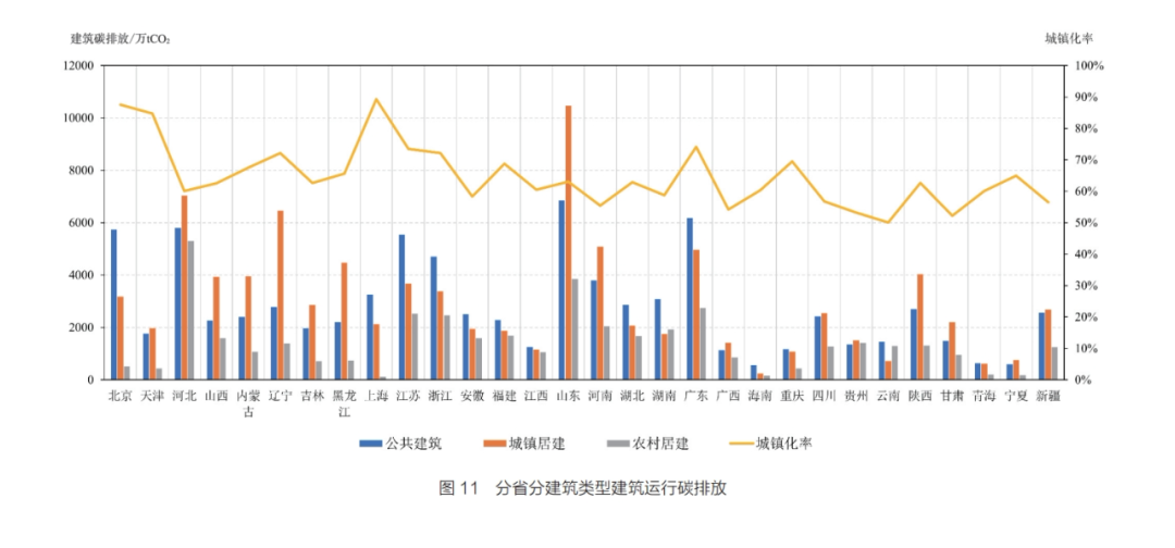 2.省级城镇化差异带来不同的建筑类型碳排放占比