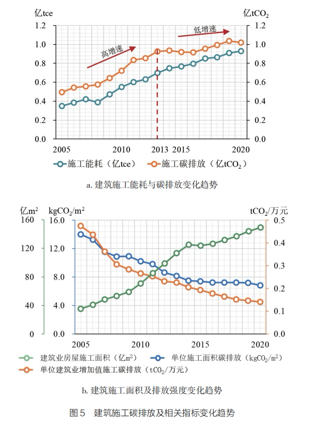 1.建筑业施工碳排放增速持续放缓,已进入达峰预备期,总量增长空间有限