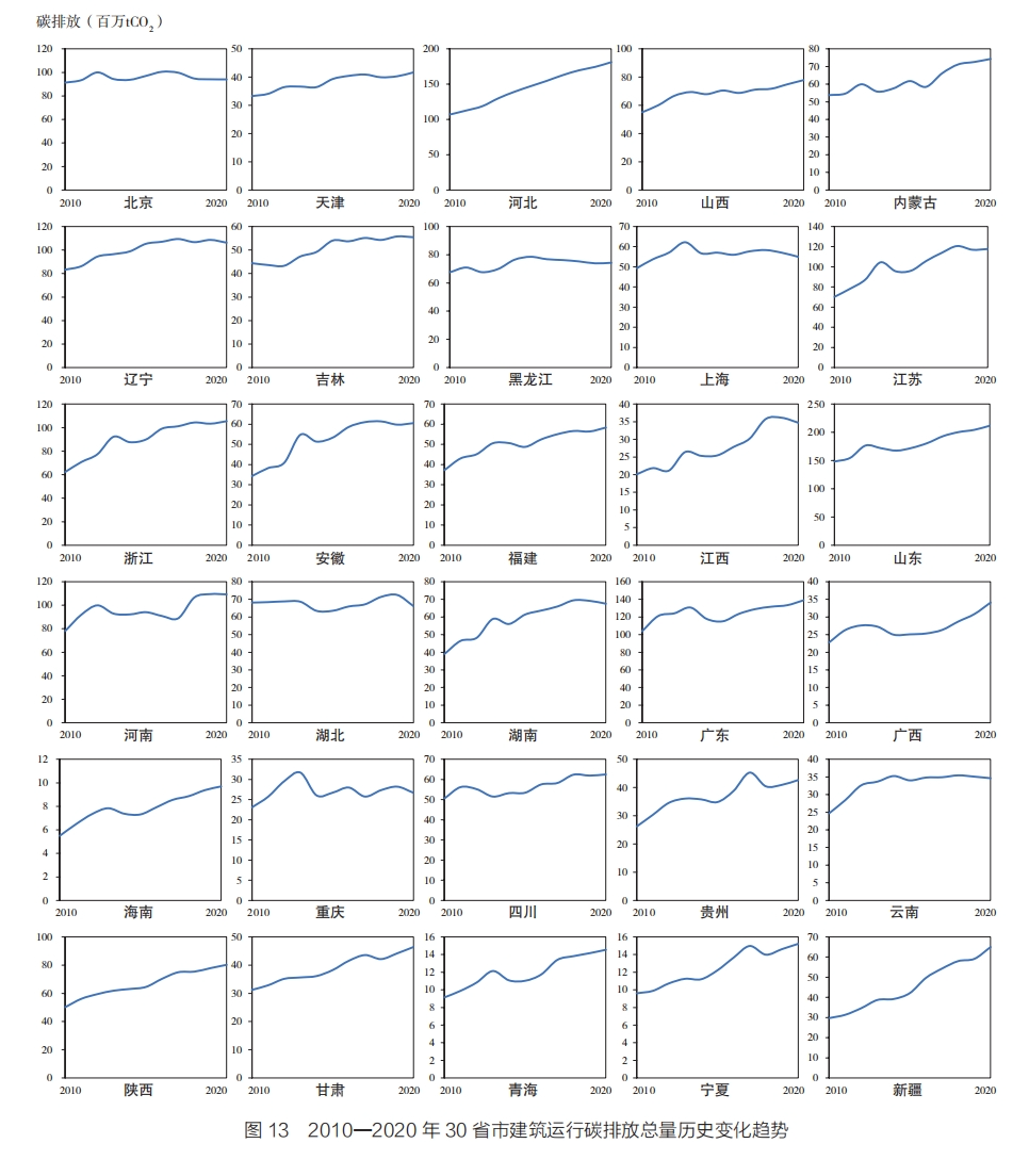 (三)各省建筑运行碳排放总量变化趋势