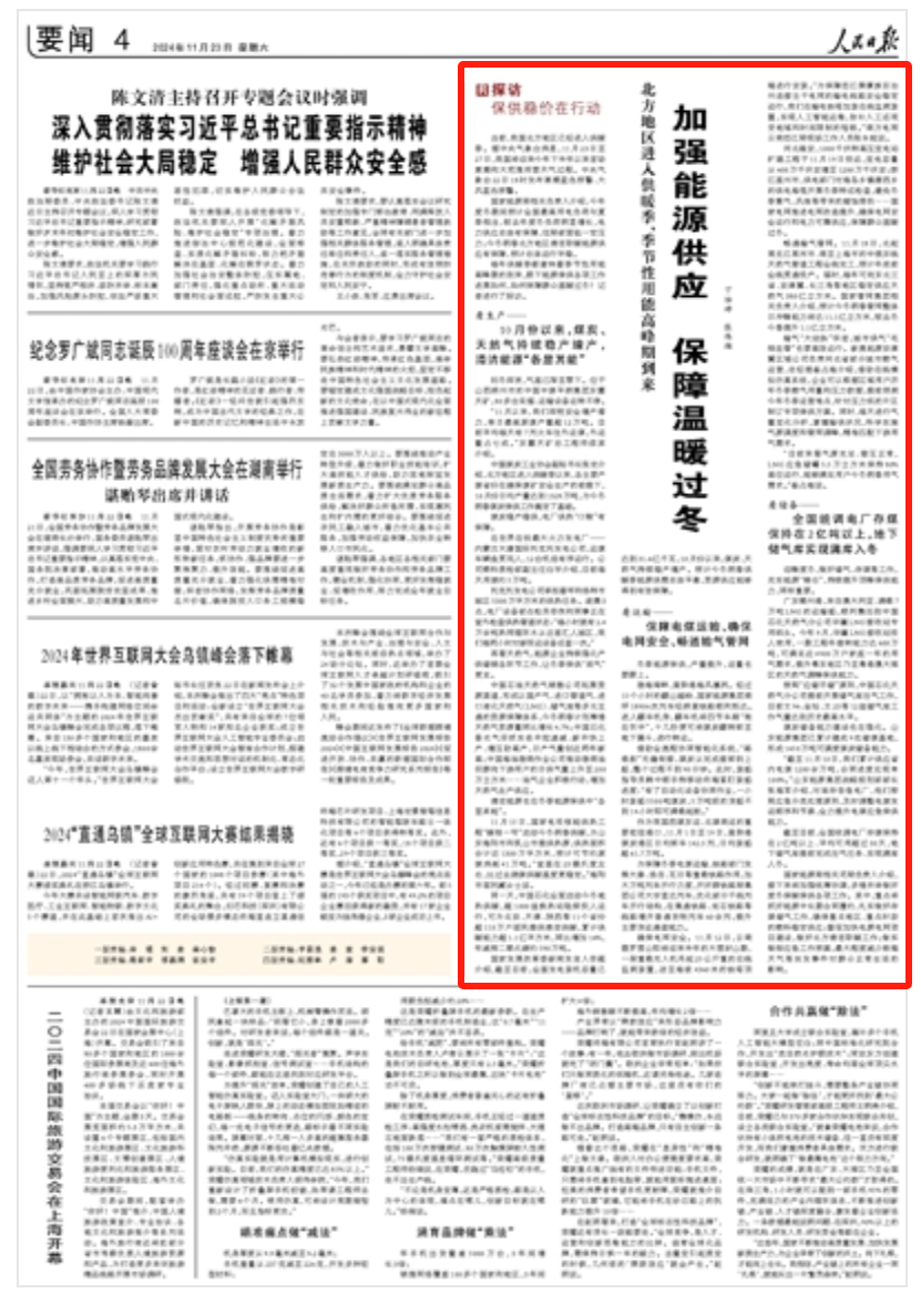 迎峰度冬,做好储气、存煤等工作,充实能源“粮仓”,持续提升顶峰保供能力,同样重要。