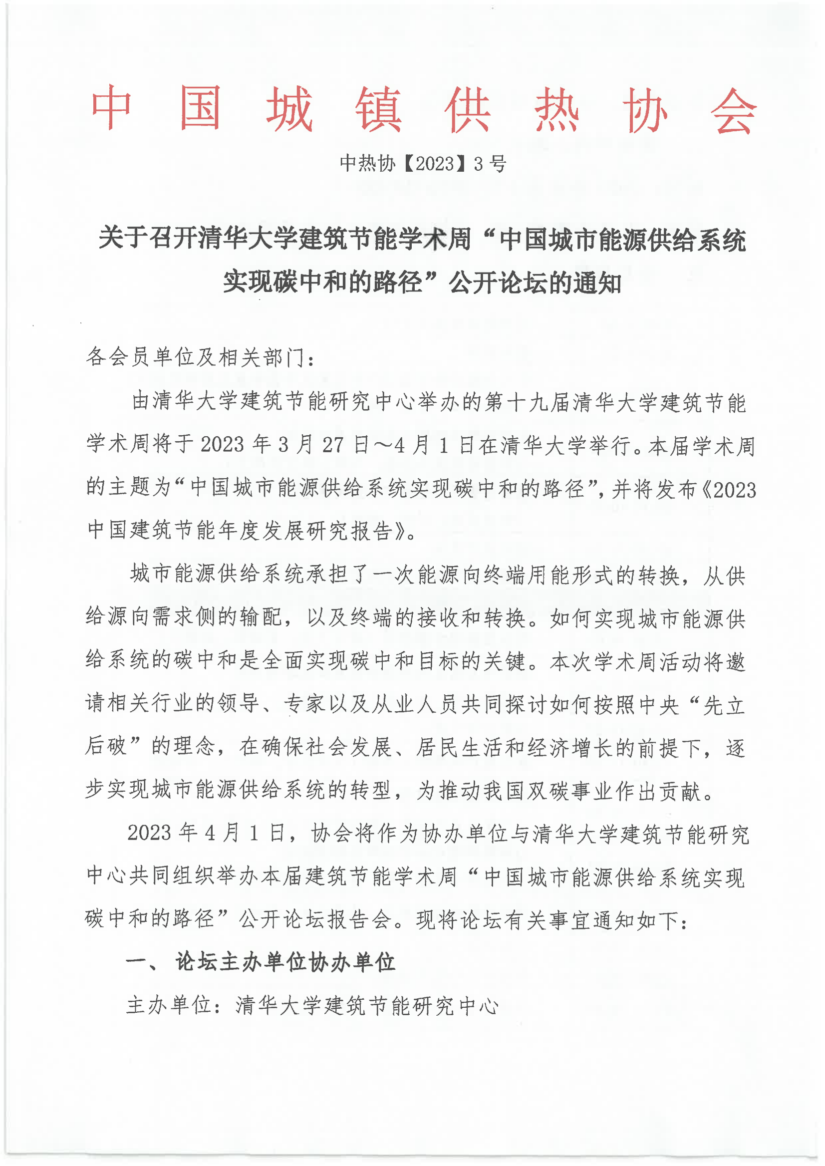 清华大学建筑节能学术周“中国城市能源供给系统实现碳中和的路径”公开论坛