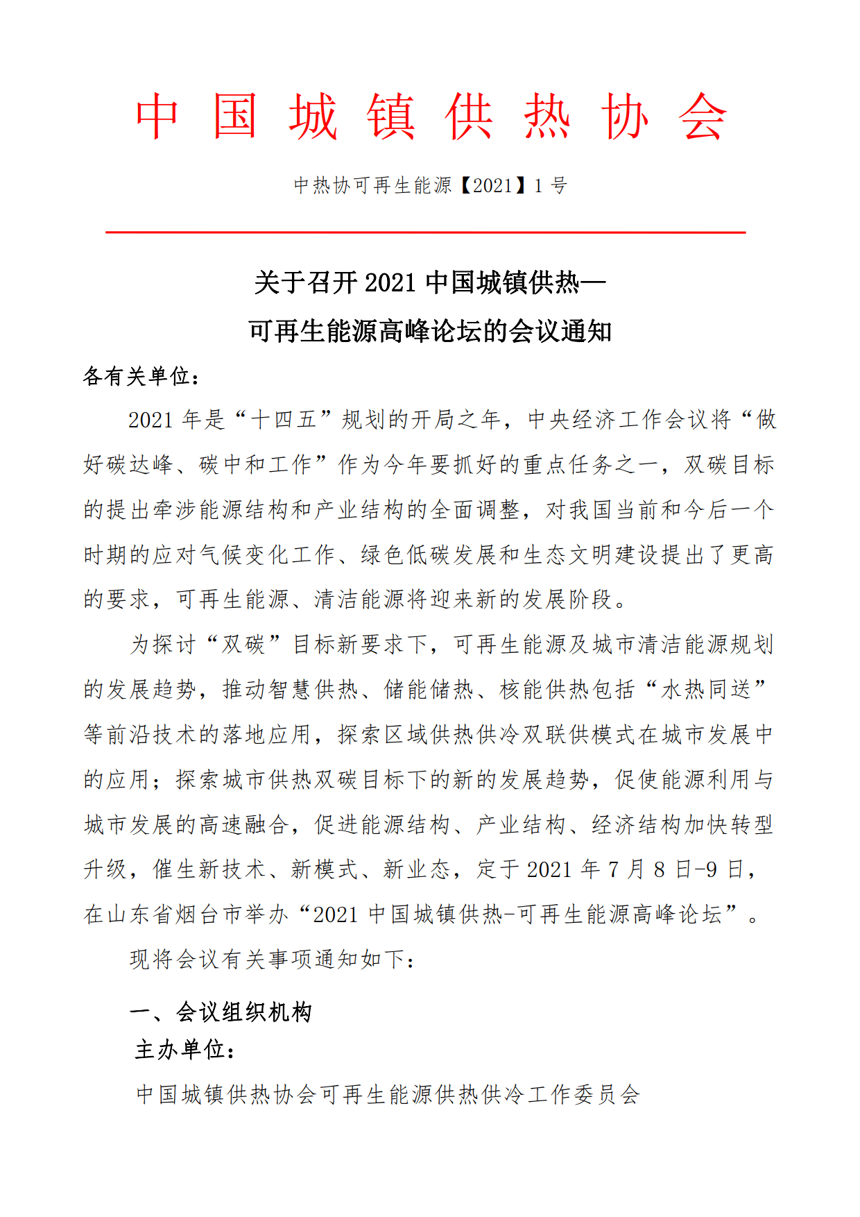 2021中国城镇供热—可再生能源高峰论坛