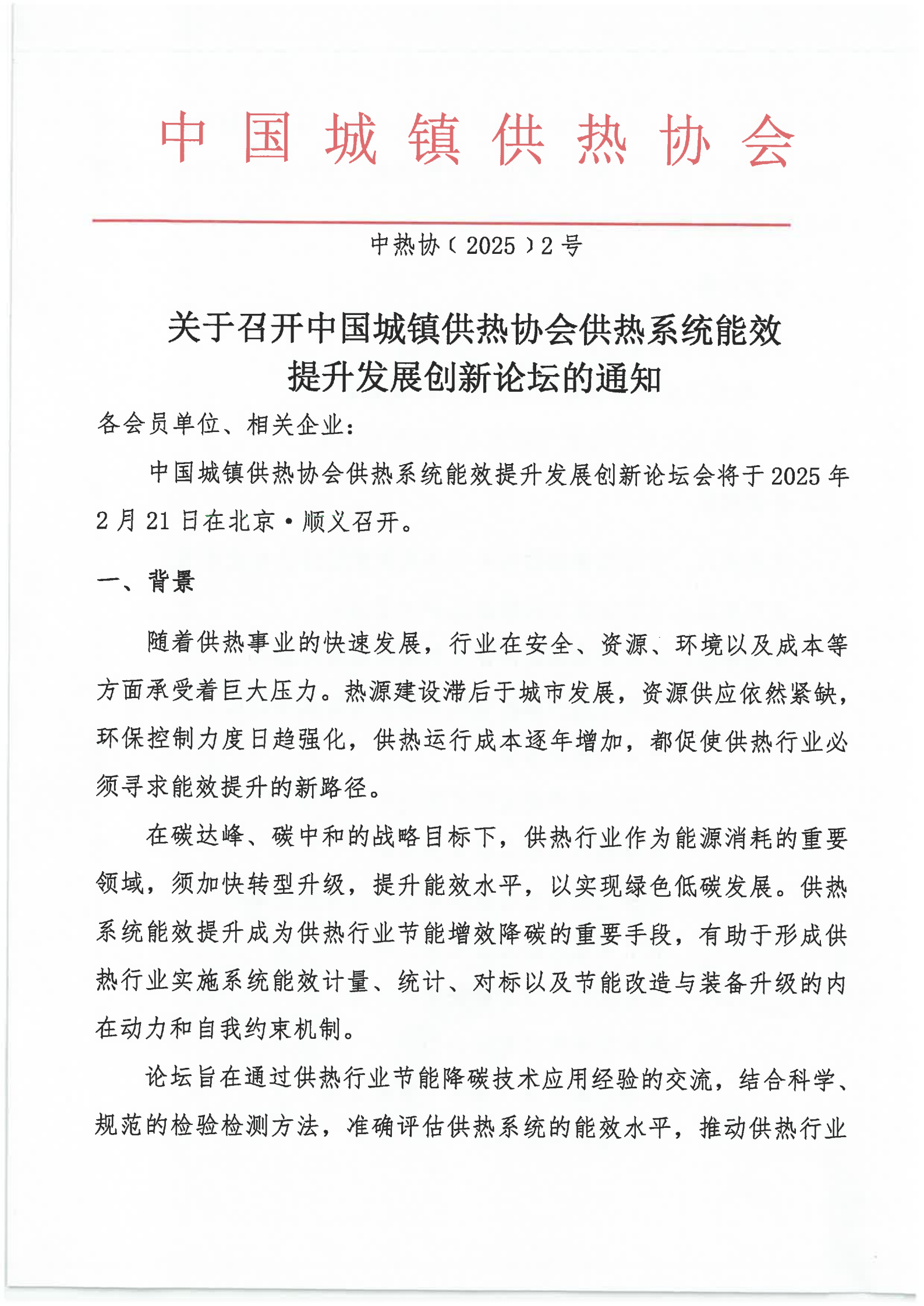 关于召开中国城镇供热协会供热系统能效提升发展创新论坛的通知