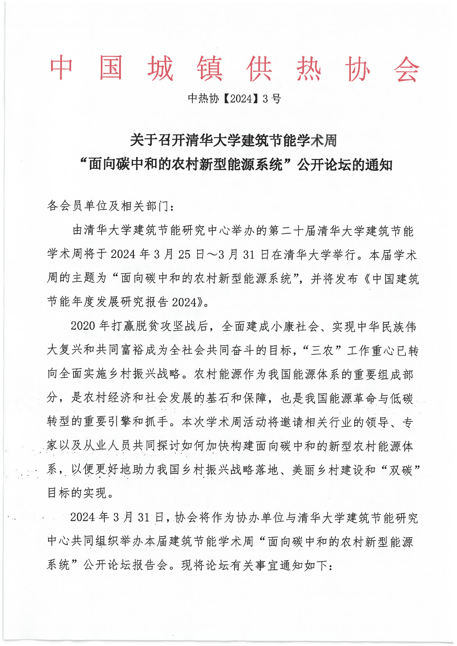关于召开清华大学建筑节能学术周 “面向碳中和的农村新型能源系统”公开论坛的通知