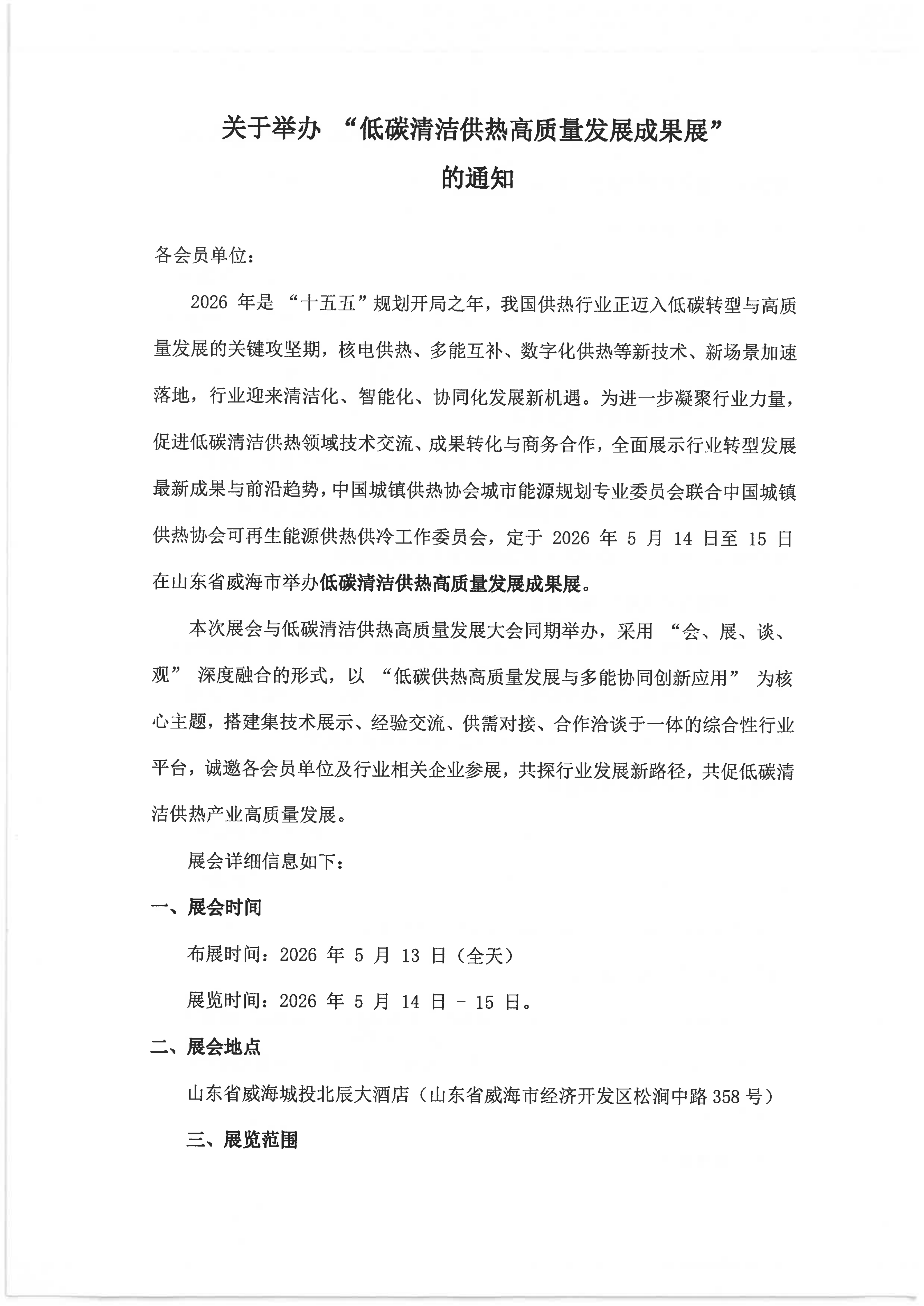 关于召开低碳清洁供热高质量发展大会 的通知