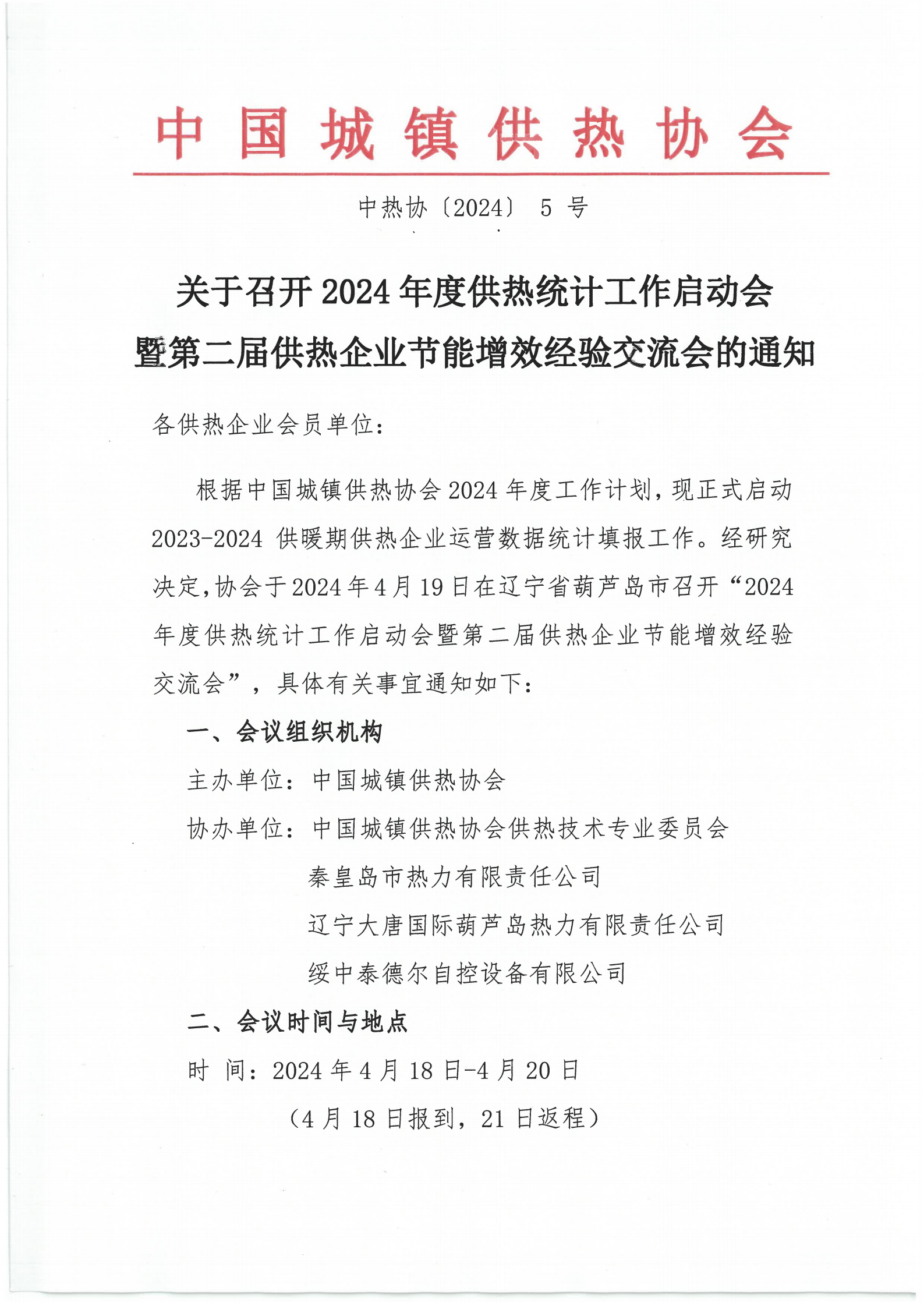 关于召开2024年度供热统计工作启动会暨第二届供热企业节能增效经验交流会的通知
