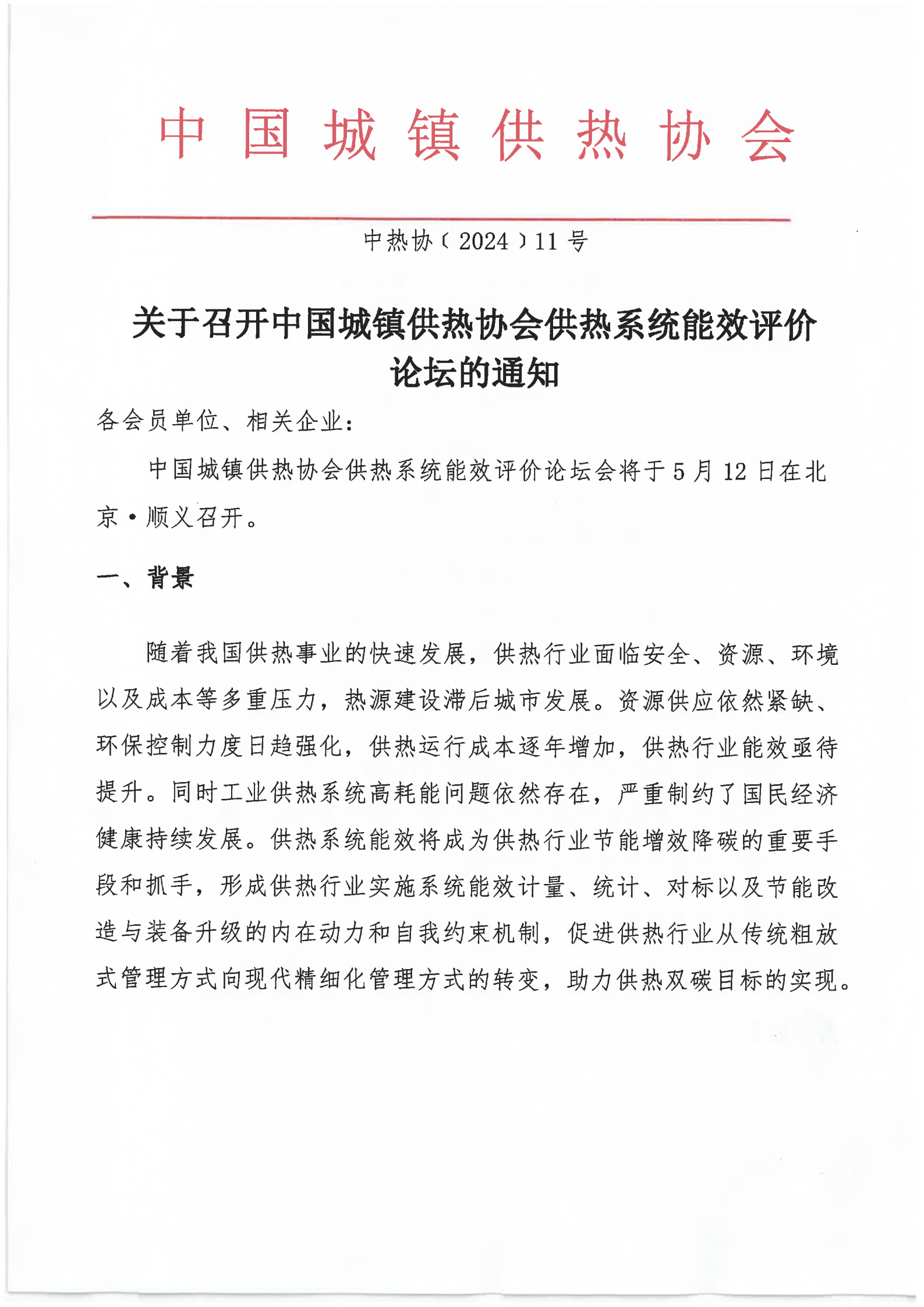 关于召开中国城镇供热协会供热系统能效评价论坛的通知