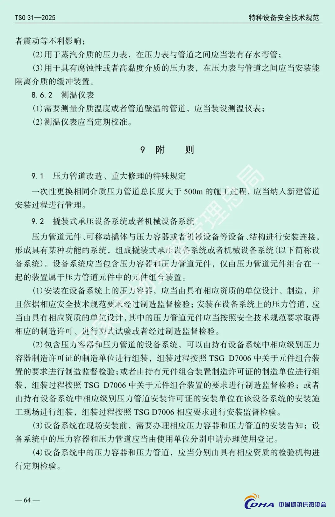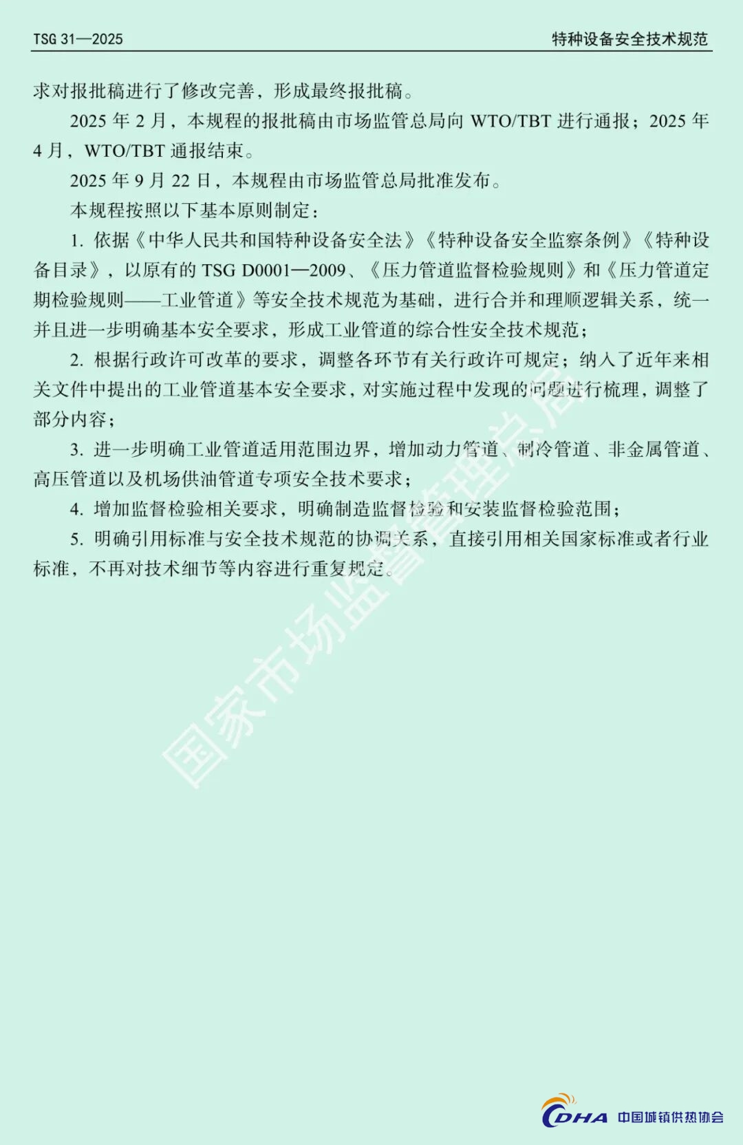 该《规程》根据《中华人民共和国特种设备安全法》规定,结合压力管道安全状况,市场监管总局对《压力管道安全技术监察规程—工业管道》(TSG D0001—2009)、《压力管道定期检验规则—工业管道》(TSG D7005—2018)等安全技术规范进行整合修订。