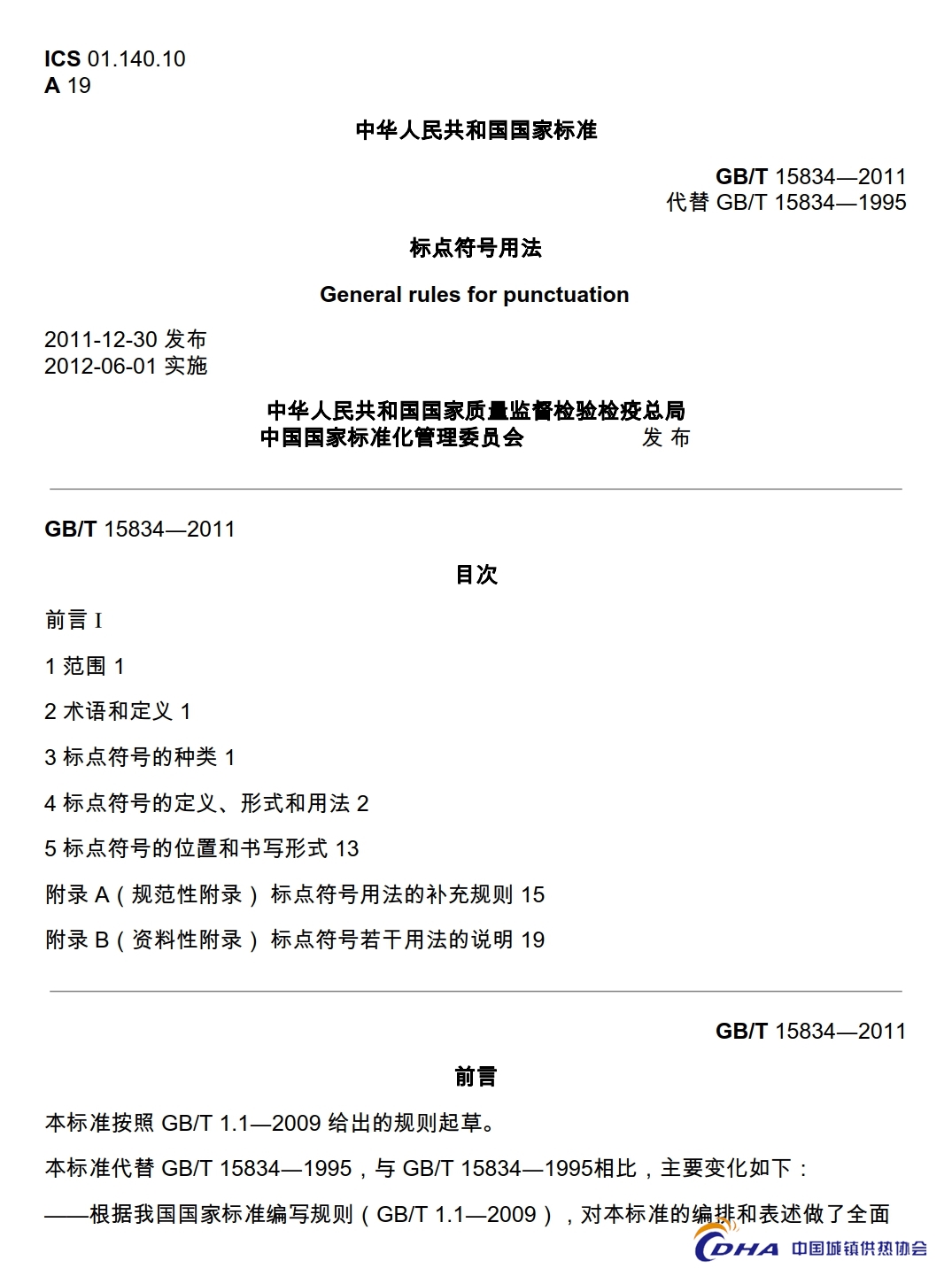 GB/T 15834-2011《标点符号用法》