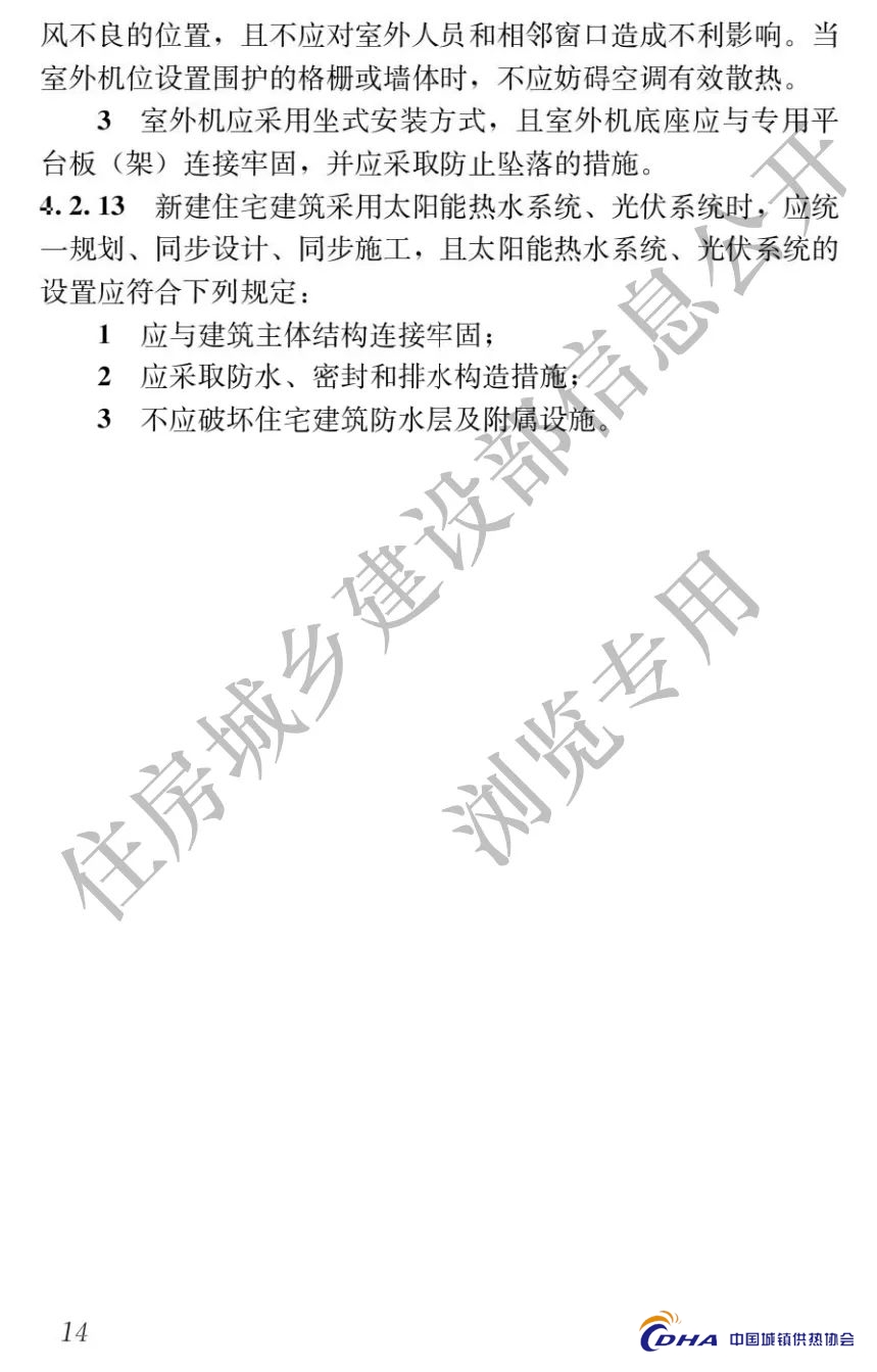 4.2.13 新建住宅建筑采用太阳能热水系统、光伏系统时,应统一规划、同步设计、同步施工,且太阳能热水系统、光伏系统的设置应符合下列规定: