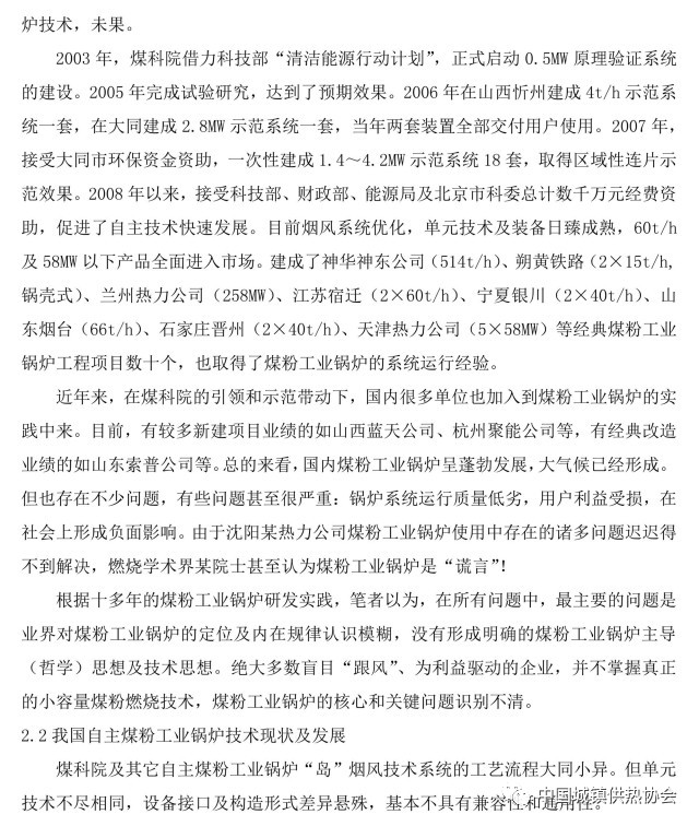 2.2我国自主煤粉工业锅炉技术现状及发展