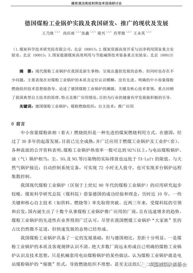 德国煤粉工业锅炉实践及我国研发推广的现状及发展