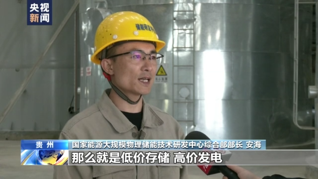 国家能源大规模物理储能技术研发中心综合部部长安海:晚上波谷的时候电价很低,那么我们就把电能存储起来,白天波峰的时候电价相对比较高,我们又把它释放出来,那么就是低价存储、高价发电,从而实现盈利。
