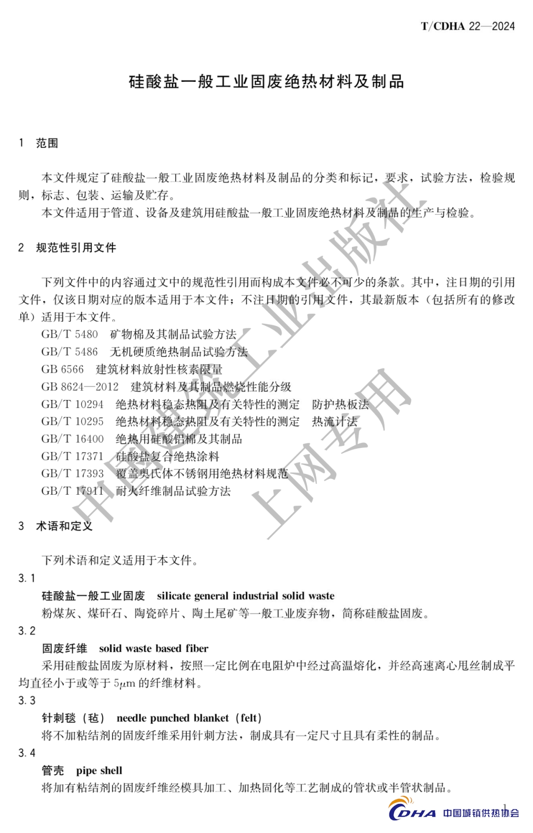 T/CDHA 22-2024《硅酸盐一般工业固废绝热材料及制品》