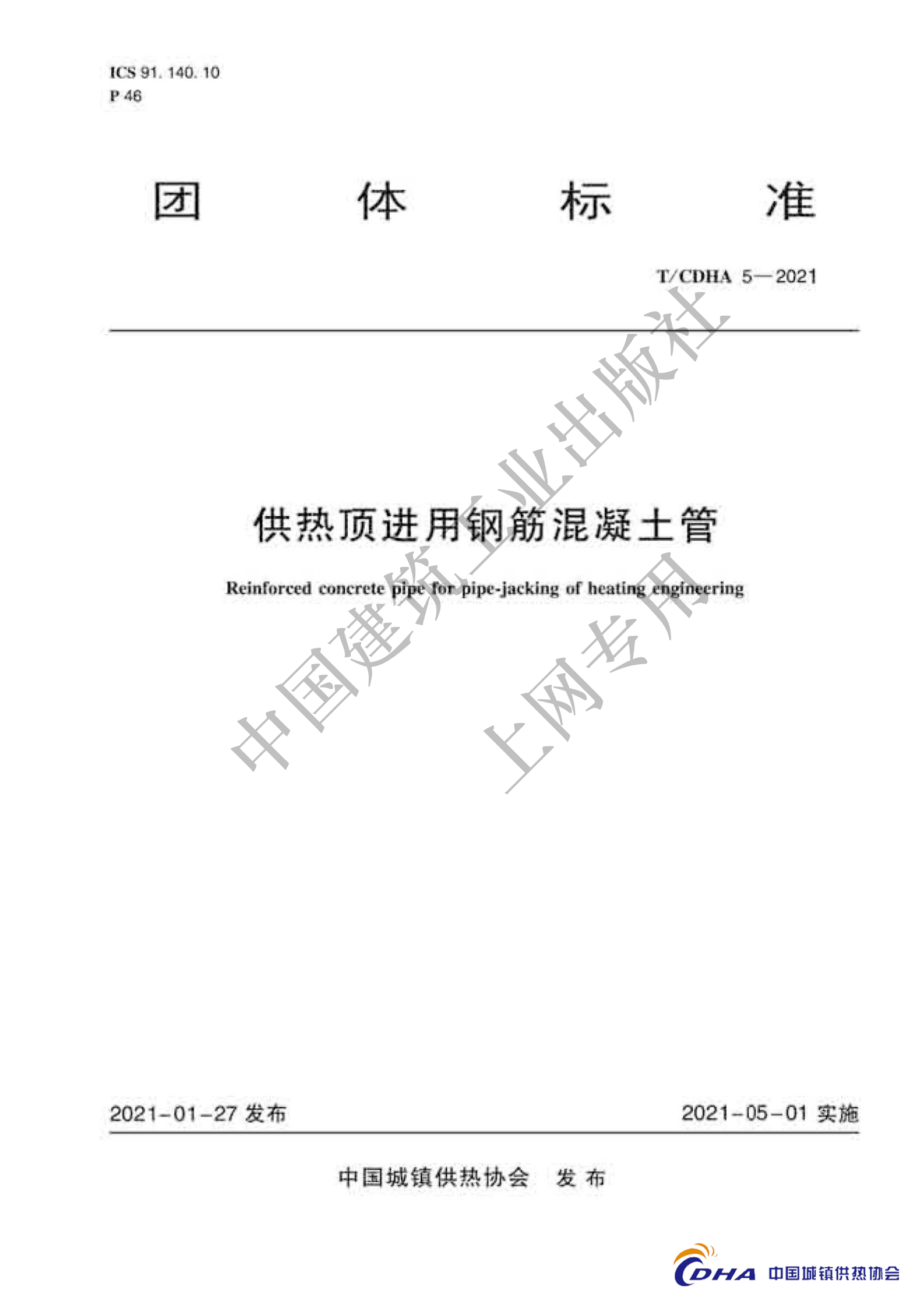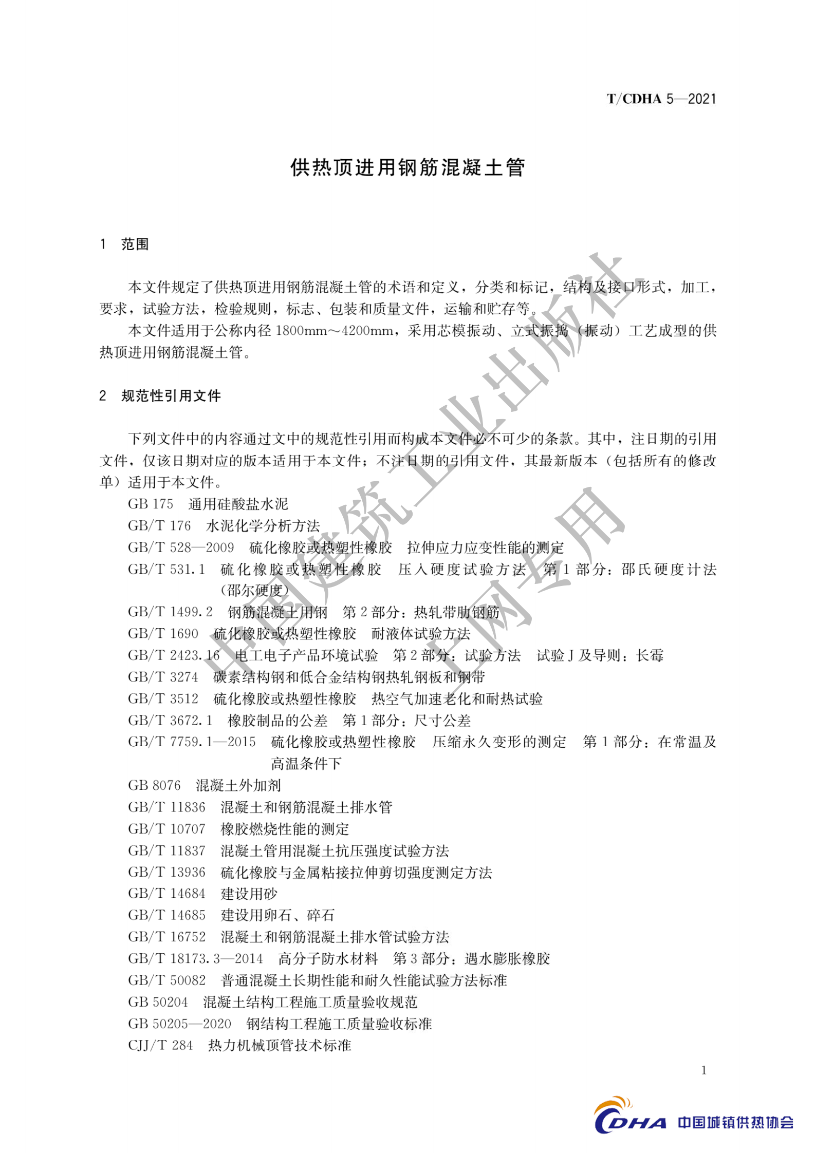 T/CDHA 5-2021《供热顶进用钢筋混凝土管》