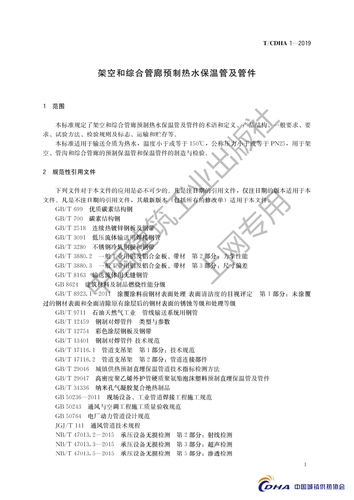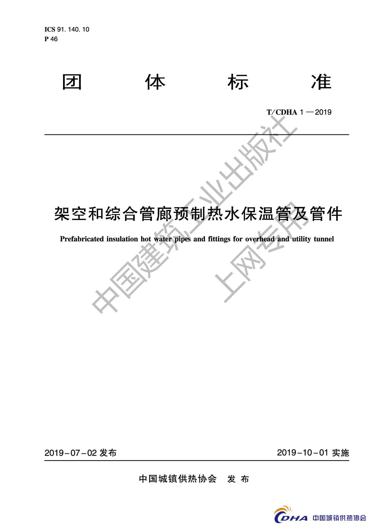 TCDHA 1-2019《架空和综合管廊预制热水保温管及管件》