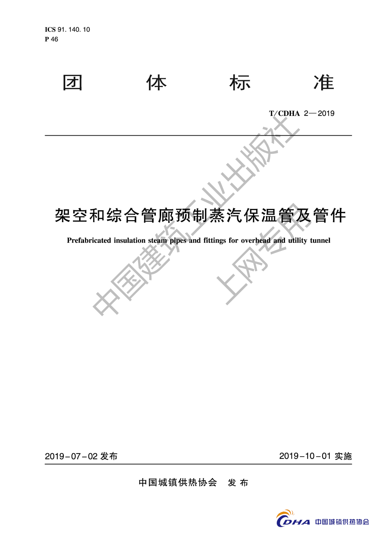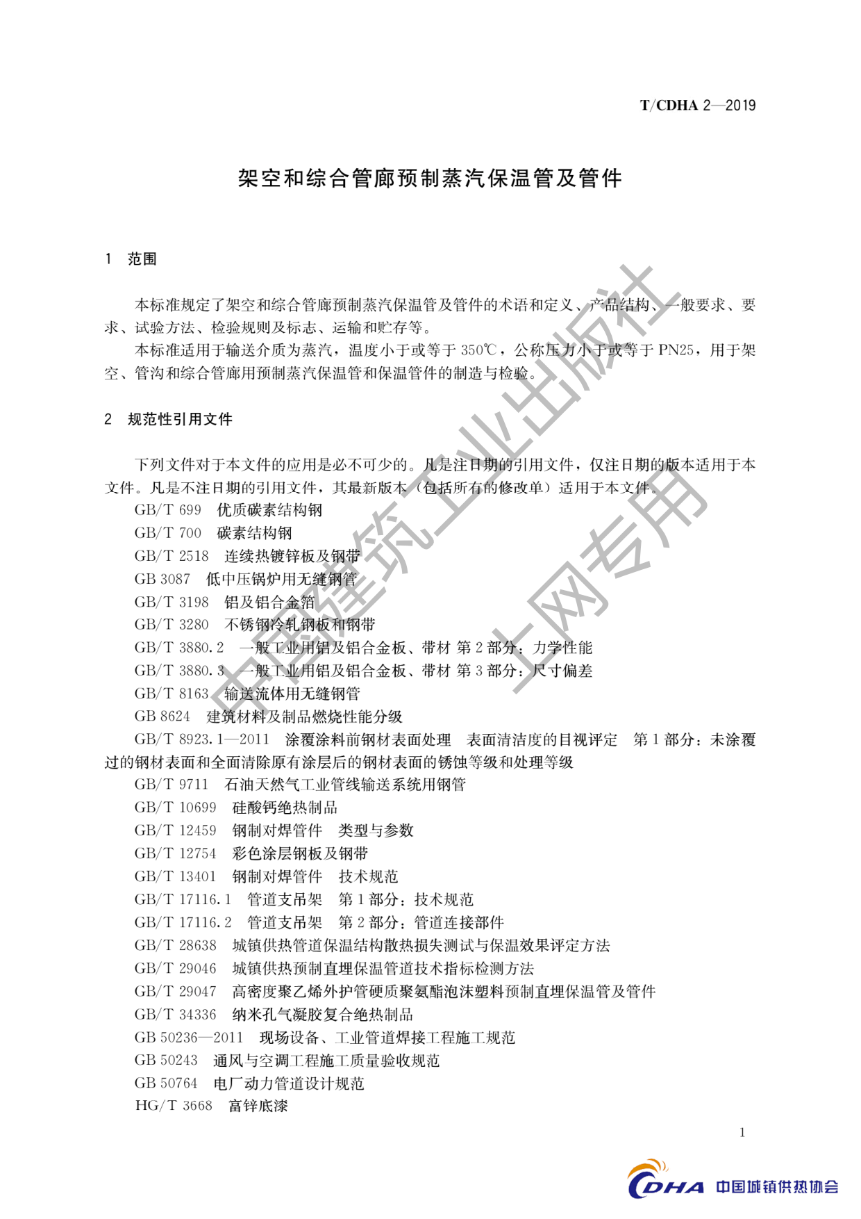 TCDHA 2-2019《架空和综合管廊预制蒸汽保温管及管件》