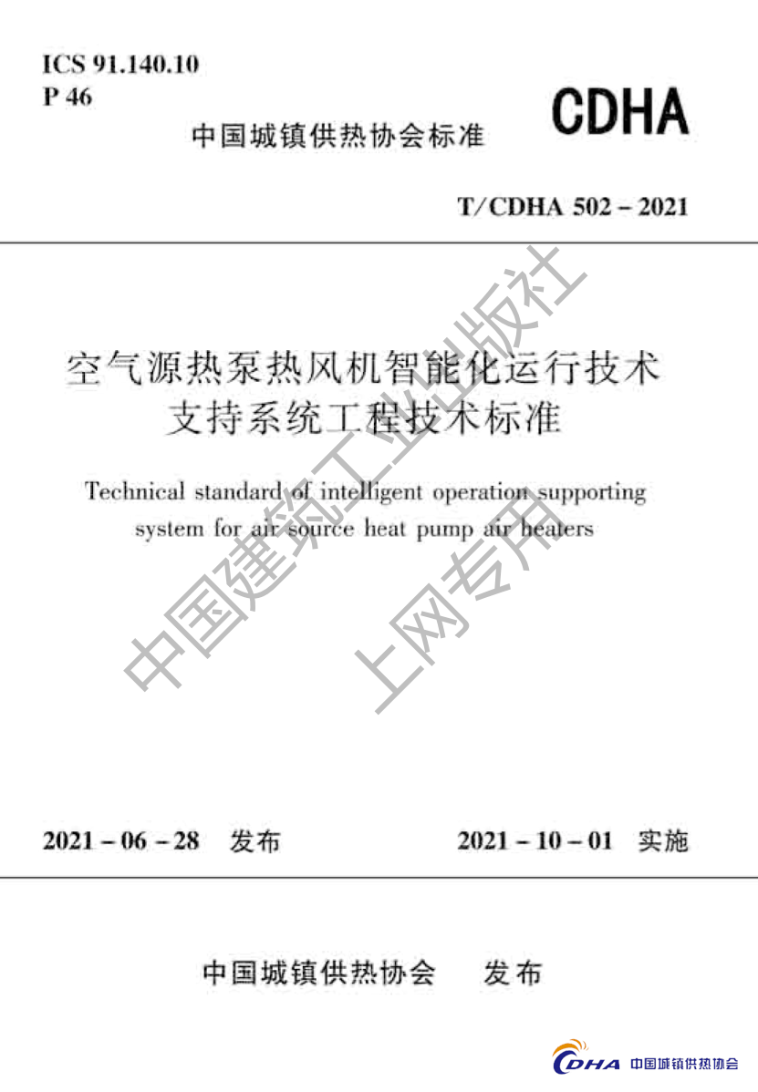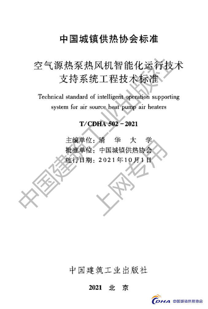 T/CDHA 502-2021 《空气源热泵热风机智能化运行技术支持系统工程技术标准》