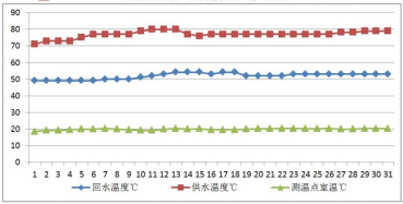 图1 某锅炉房一次侧温度与室温监测对应图(2018.12)