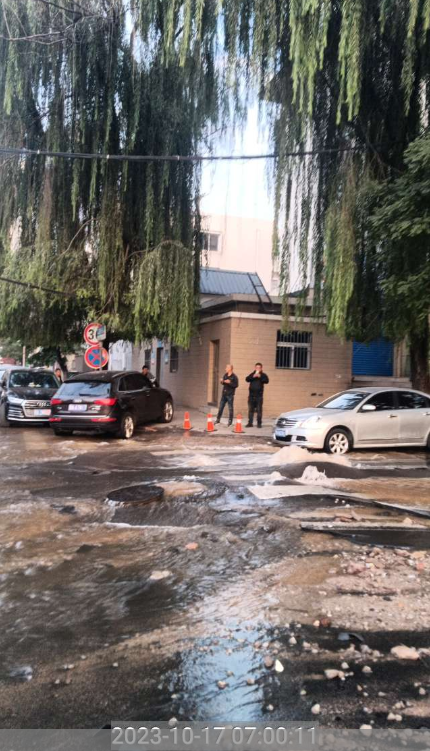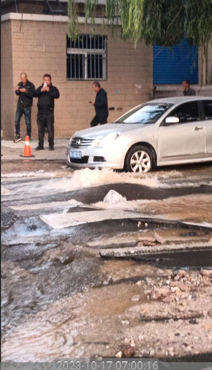 10月17日7:00,太原市数字城管中心采集员也发现漏点,如图10-18,可见现场仍在漏水,说明漏点未被完全隔离,已通知相关集团分公司。