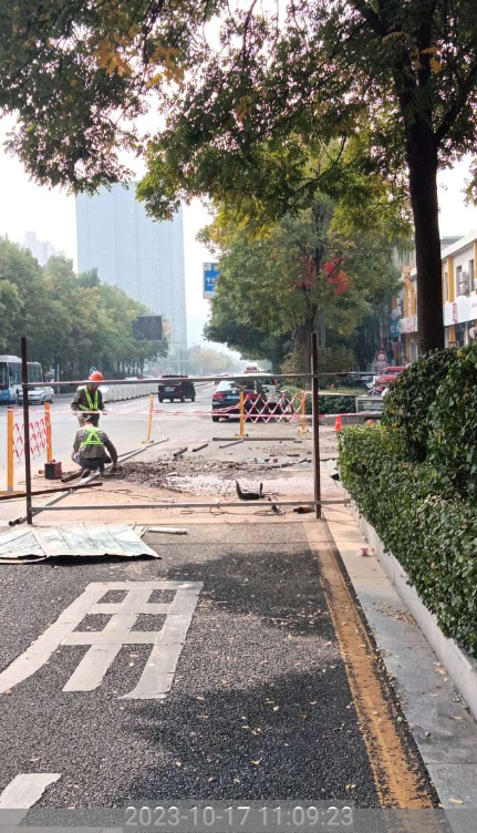10月17日11:20,现场照片显示路面基本已无积水,施工方正在处理。(图10-20)