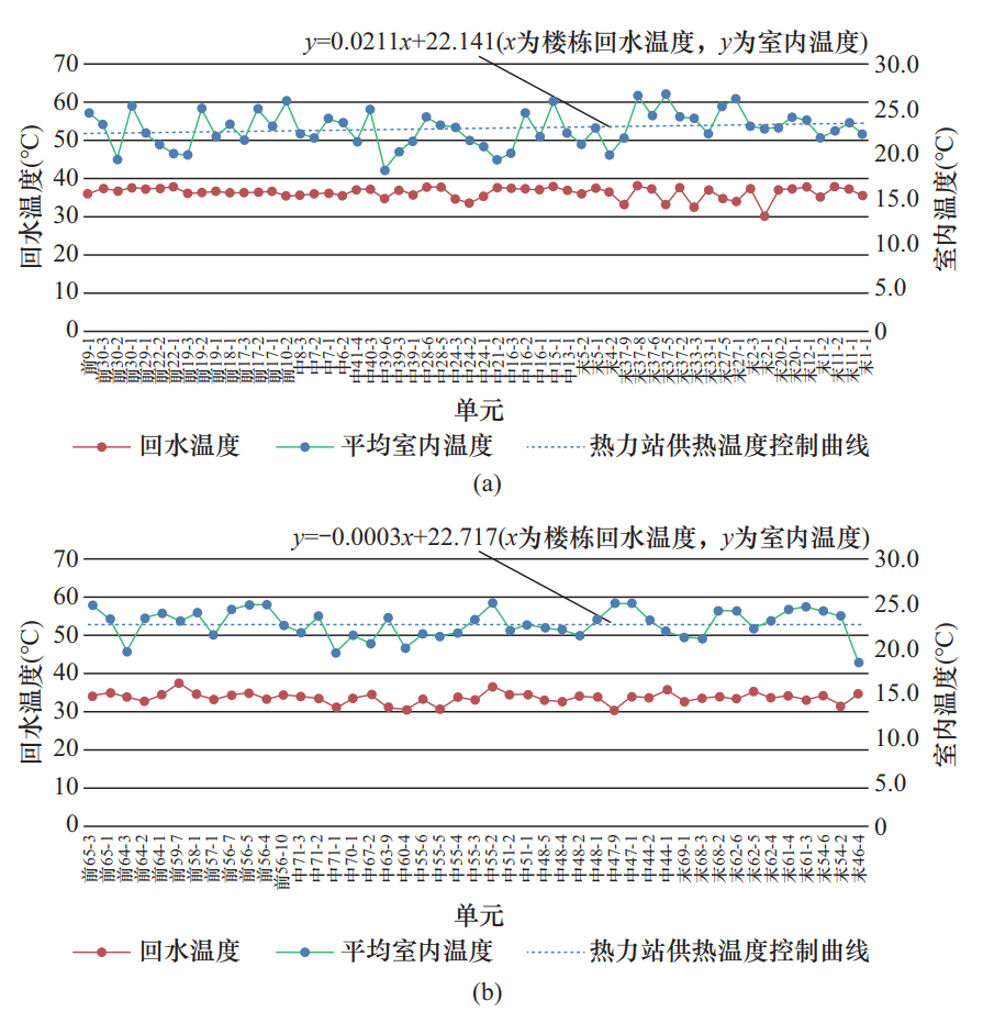图3 单元回水温度与其对应平均室内温度分析图