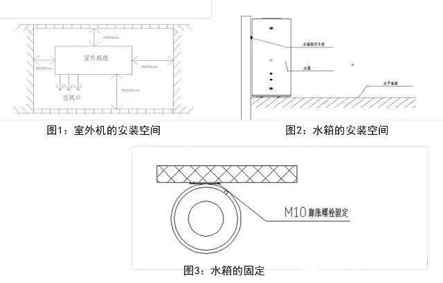 2.支承面平坦,能承受室外机重量,且可以在垂直方向固定水箱处