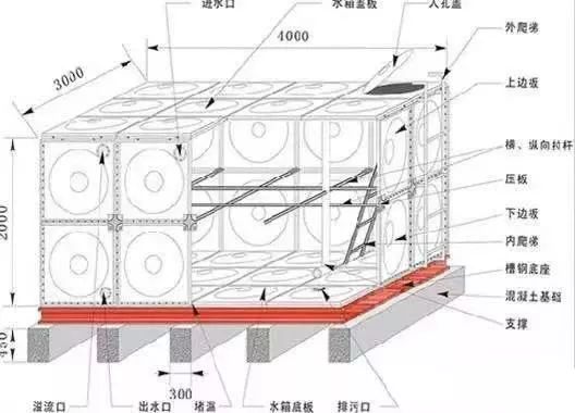 设计中,由于组合式水箱造价高,尽量选用多个小立式保温水箱连通,而不选用一个大的组合水箱。