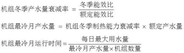 根据公式(二),计算得机组最冷月产水量=410×0.7=294L/h=0.294m³/h