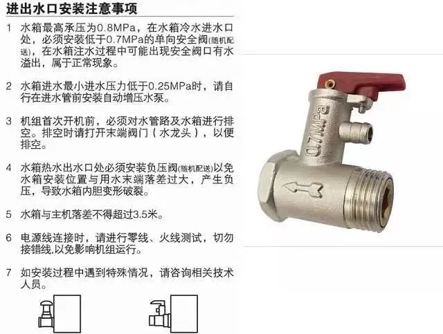 7.水箱高于热水出水口,热水管必须安装正负压安全阀