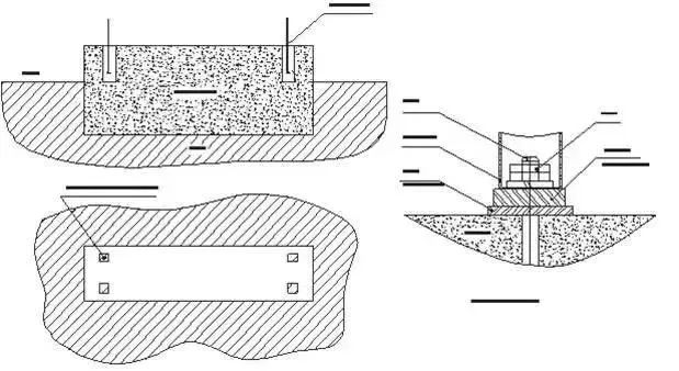 4.水泥基础台按1:2:4比例充分混合,力求坚固,并依需要埋入规定大小数量的基础螺栓。完工后的基础台表面应保证平整。