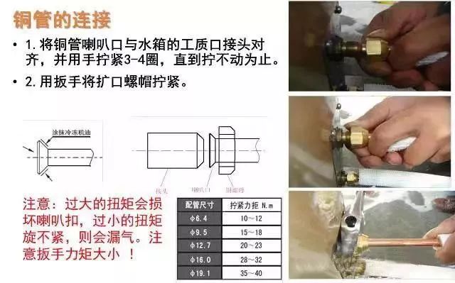 安装完毕后,应该对以下几点进行检查:先总体检查下整个工程的水系统和电控系统是否安装好,接线是否牢固,该开的阀门是否打开,该关的是否关闭。冷媒连接管是否有泄漏的情况,然后再送电,用万用表检查电源是否正常,再开机。开机后需要检查的几个要点:
