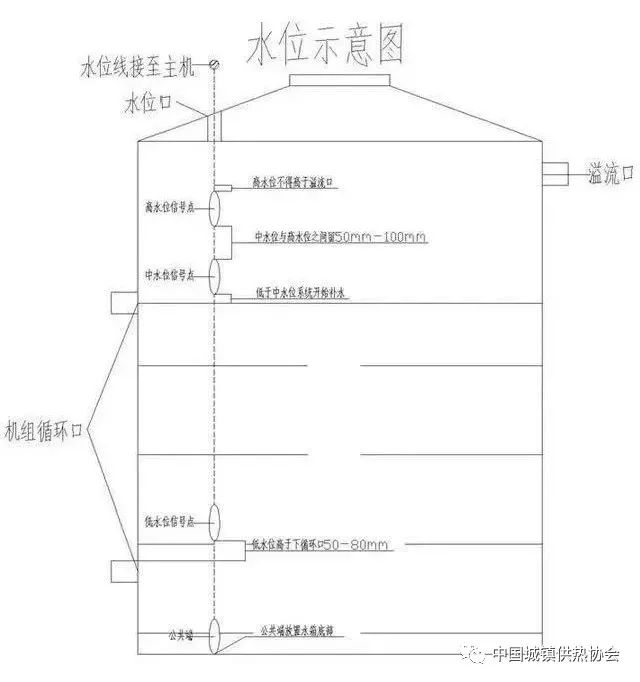 加热水箱加水采用水位补水,在水箱内设置高,中,低三个水位,当低于中水位时主机给电磁阀信号,电磁阀开启补水,当高于中水位时,主机给电磁阀信号,电磁阀关闭补水结束。