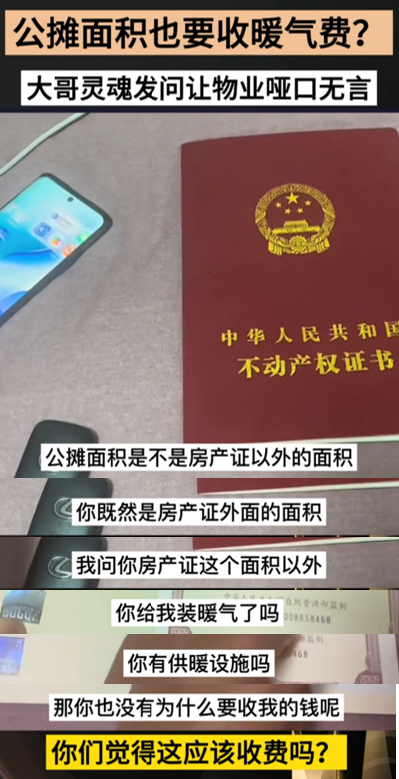 “公摊面积是房产证以外的面积,也要收暖气费?”,视频中一业主大哥灵魂拷问,让物业哑口无言!
