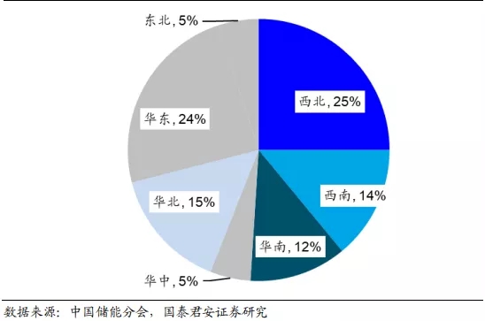 图13:西北和华东地区占全国储能装机规模的近 50%