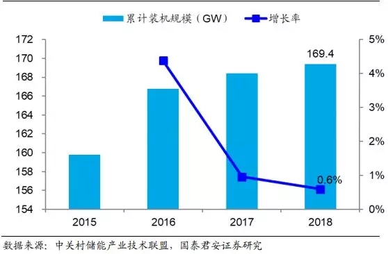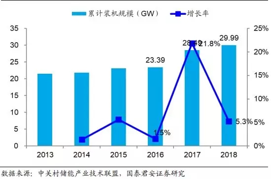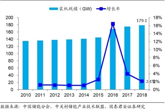 图15:2018 年我国抽水蓄能装机规模同比增长 5.3%