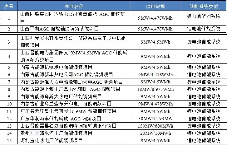 表7:部分已投运电网辅助服务项目