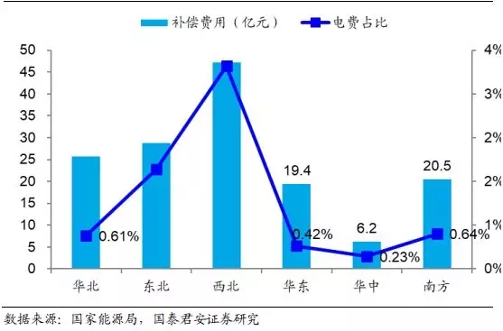 图2:2018 年电力辅助服务补偿费用地区分布