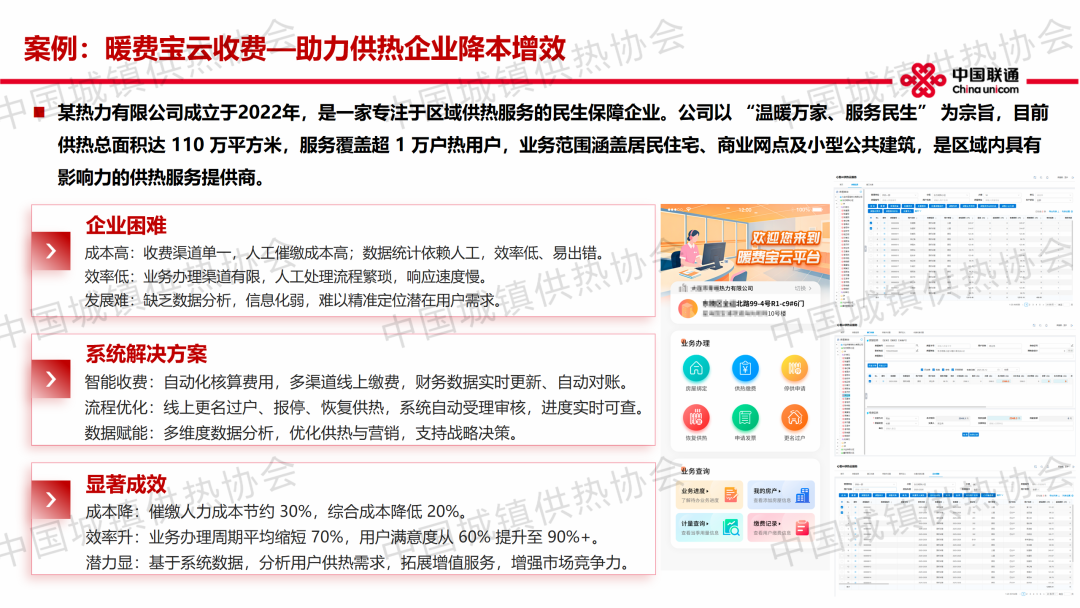 “人工智能助力智慧供热未来发展”主题论坛上,中国联通(大连)工业互联网研究院院长姚昌杞作了关于“以科技赋能,助力供热行业数字化转型”的主题演讲,分享了公司供热收费云服务、智慧客服系统、智慧用电及能耗管理一体化系统等产品及相关应用案例。