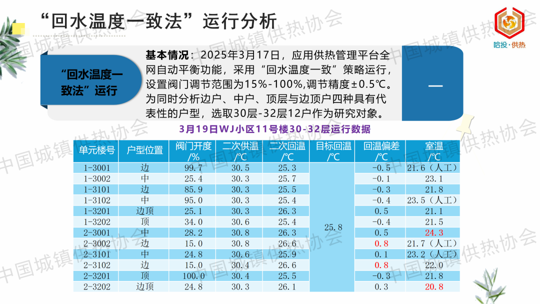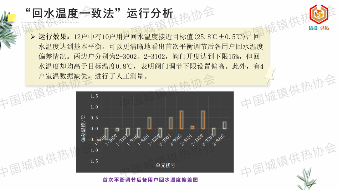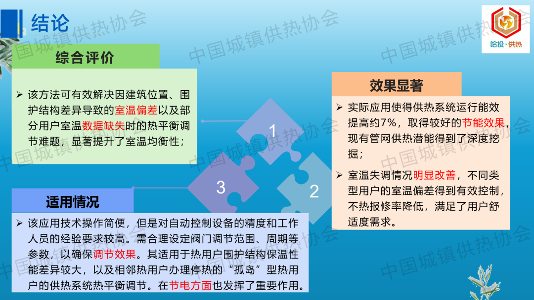 “二网平衡与调控”分论坛上,高帅从研究背景与问题、理论分析与调节方法、实际应用案例及效果分析、注意事项与优化建议、结论与展望五大方面就此论文作了主题演讲,高帅表示,“回水温度一致法”适用于热用户围护结构保温性能差异较大,以及相邻热用户办理停热的“孤岛”型热用户的供热系统热平衡调节。该方法可有效解决因建筑位置、围护结构差异导致的室温偏差以及部分用户室温数据缺失时的热平衡调节难题,显著提升了室温均衡性。