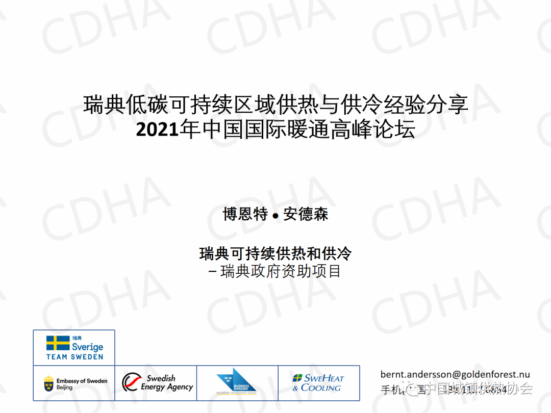 瑞典供热&供冷委员会中国区主席博恩特·安德森:瑞典低碳可持续区域供热与供冷经验分享
