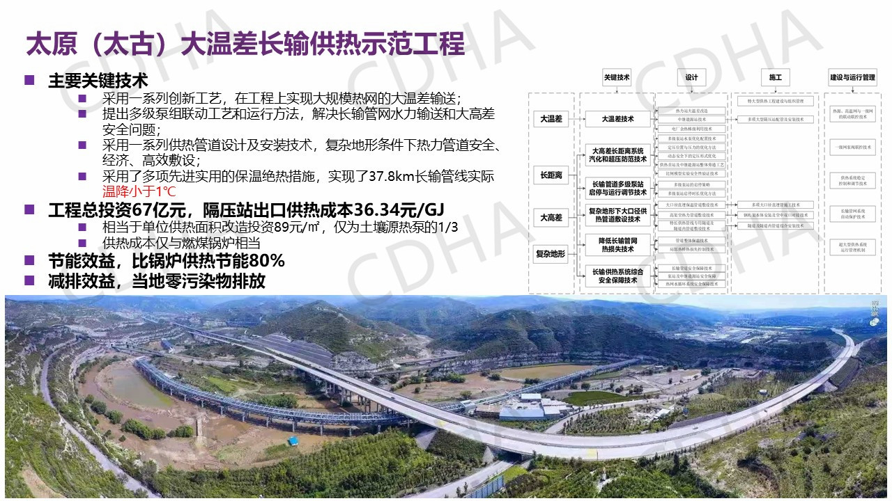 所以最后的结论是这样,我们通过5个特征,就是降低回水温度、高效的余热利用、热电气协同、燃气调峰和长输供热这五个特征来支撑了四个改变,也就是以低温、低品位、余热为主的,三级管网及能源站系统、热泵加储能设施,这种对整个项目的进行四个重大的改变,从而实现三个效果,即节能90%、减排90%、成本和燃煤锅炉相当,最终实现我们低碳和低成本的两个目标,进而就构建了我们中国清洁供热2025模式。好,我汇报完毕,谢谢。