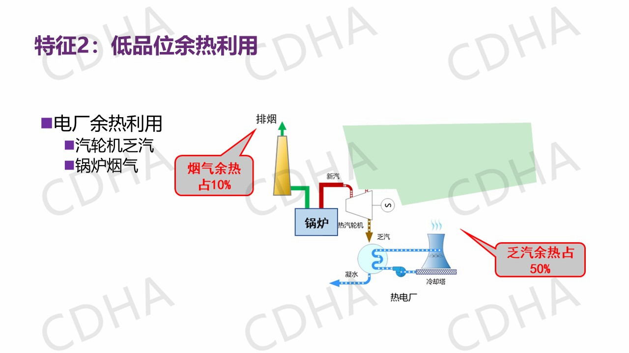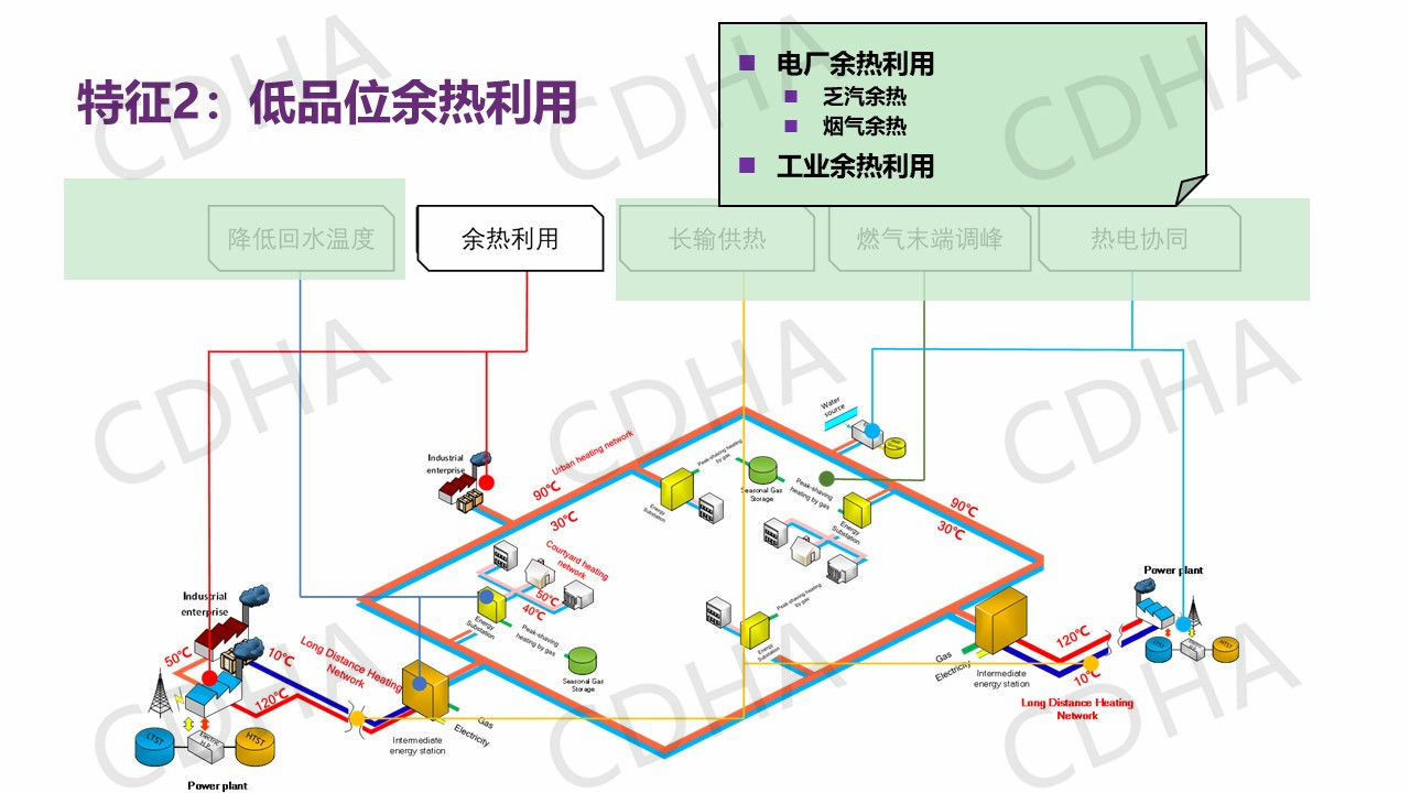 通过总结中国清洁供热与国外供热情况的不同,不难发现在我们供热能源里还存在着丰富的余热资源,而且这种余热资源在国外是很难找到的,如果将余热资源充分的利用进行供热,那就是零能耗零排放。那么能不能把它用起来呢?这是一个很大的问题。因此我们归纳出了五个特征,如果把这五个特征都能实现,那么刚刚总结的两个目标就可以得以实现。