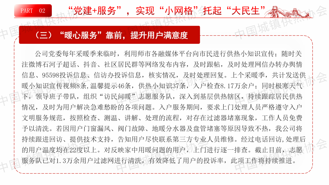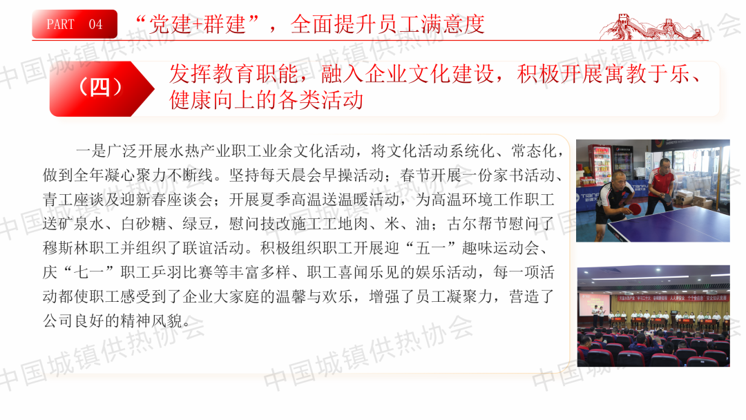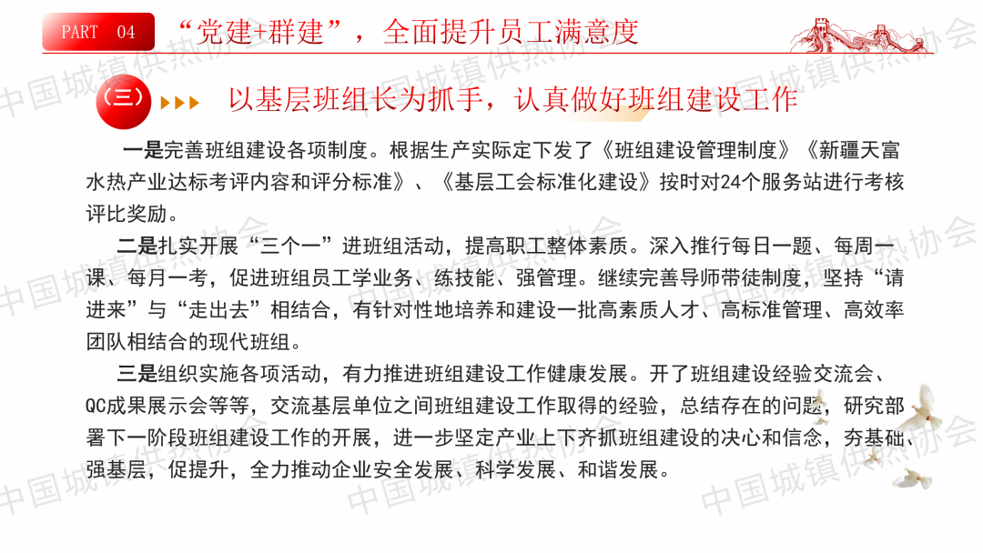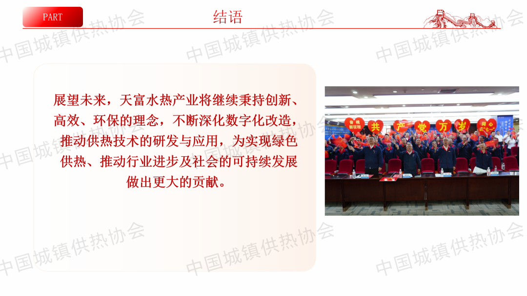 新疆天富水热产业纪委书记、工会主席潘慧斌作了关于“党建引领有'力度' 供热服务有'温度'”的主题演讲,天富能源公司通过党建工作与生产经营的深度融合,构建现代化供热体系,提升供热服务水平,全面深化从严治党,并强化员工满意度。