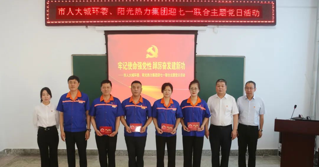 活动现场举行了“一过两重温”政治仪式。由市人大城环委领导与阳光热力集团党委班子领导分别为党龄“十年”、“二十年”和“三十年”的阳光热力集团党员代表颁发了政治生日贺卡。