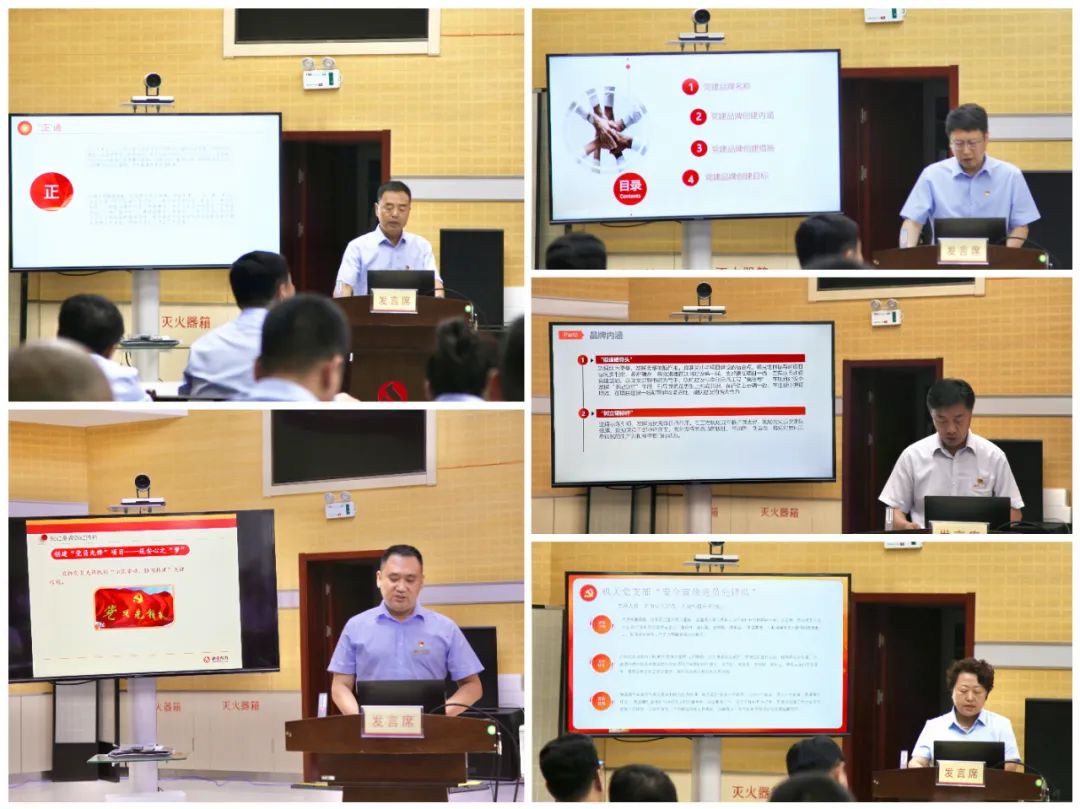 在品牌认定环节,正和公司党支部、龙安公司党支部、燃料总公司党总支、安装公司党支部、燃气公司党总支围绕各自党建工作特色亮点,从品牌名称、品牌内涵、创建措施及创建目标等方面汇报了思路和规划。