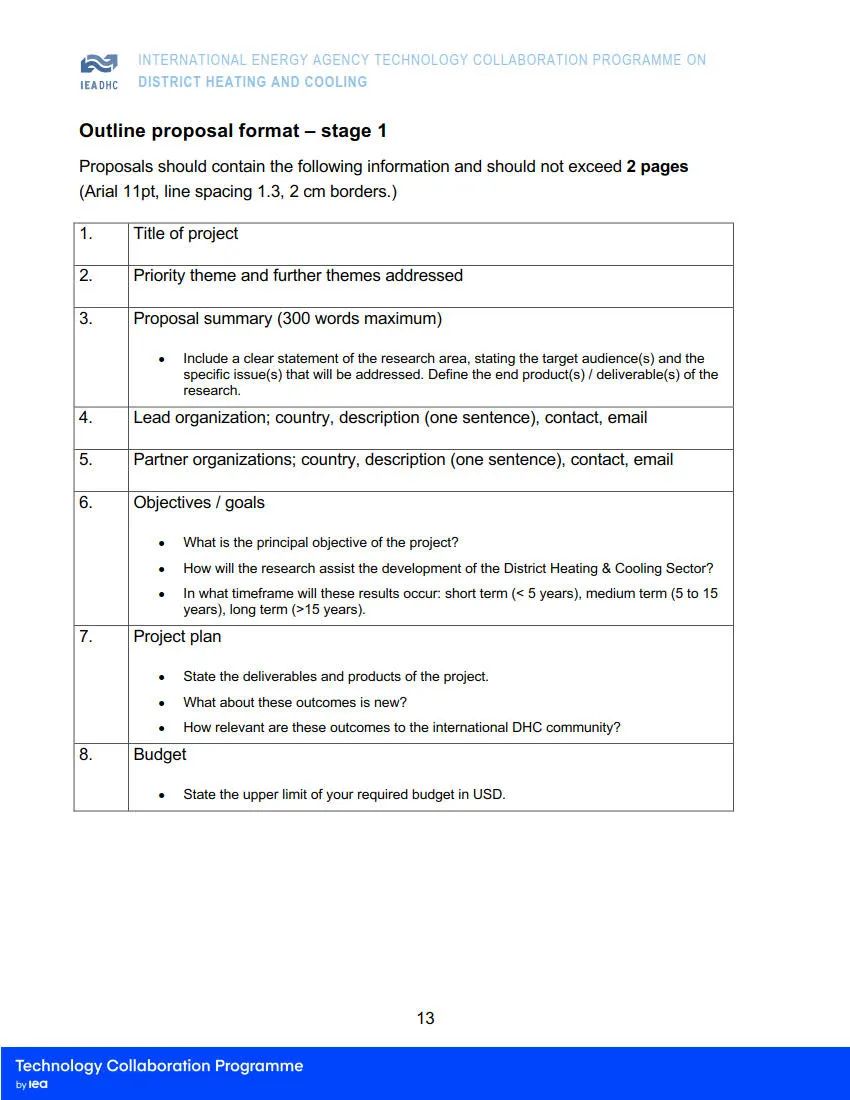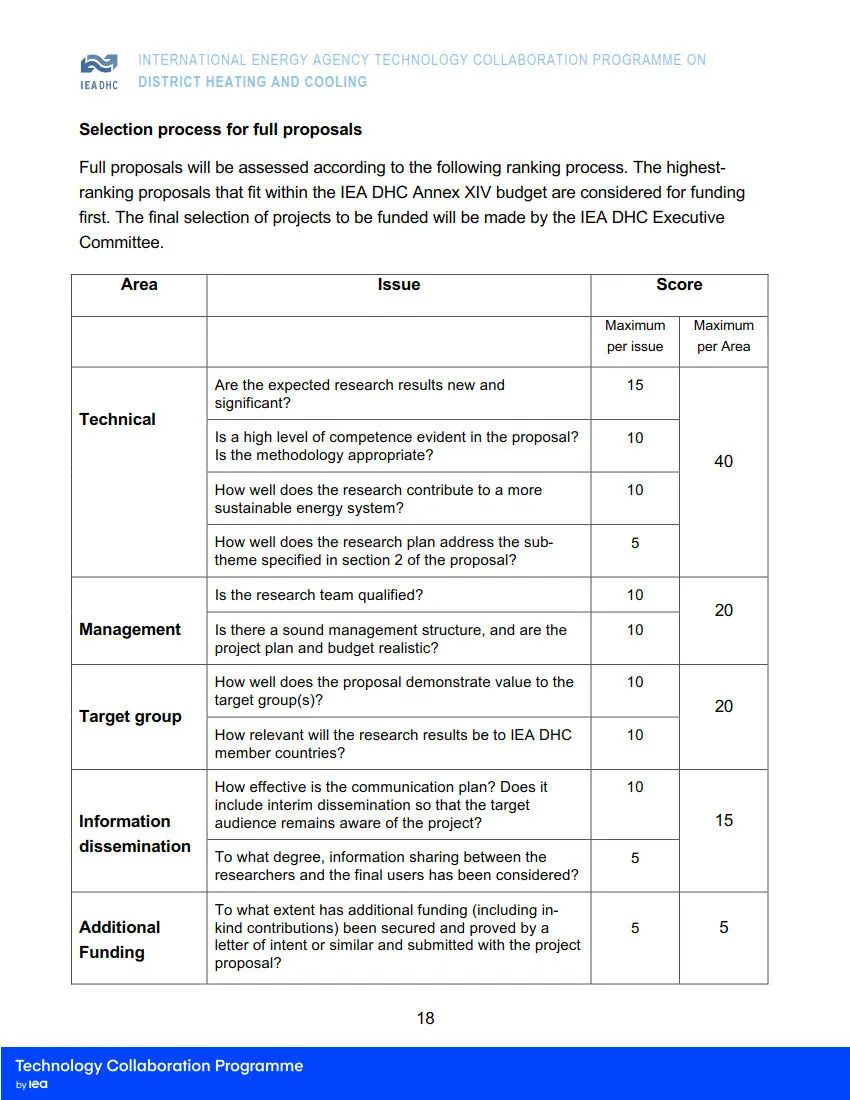 项目应与地区能源政策有相关性,可为地区能源系统的可持续发展做出贡献,并与IEA-DHC成员国相关;