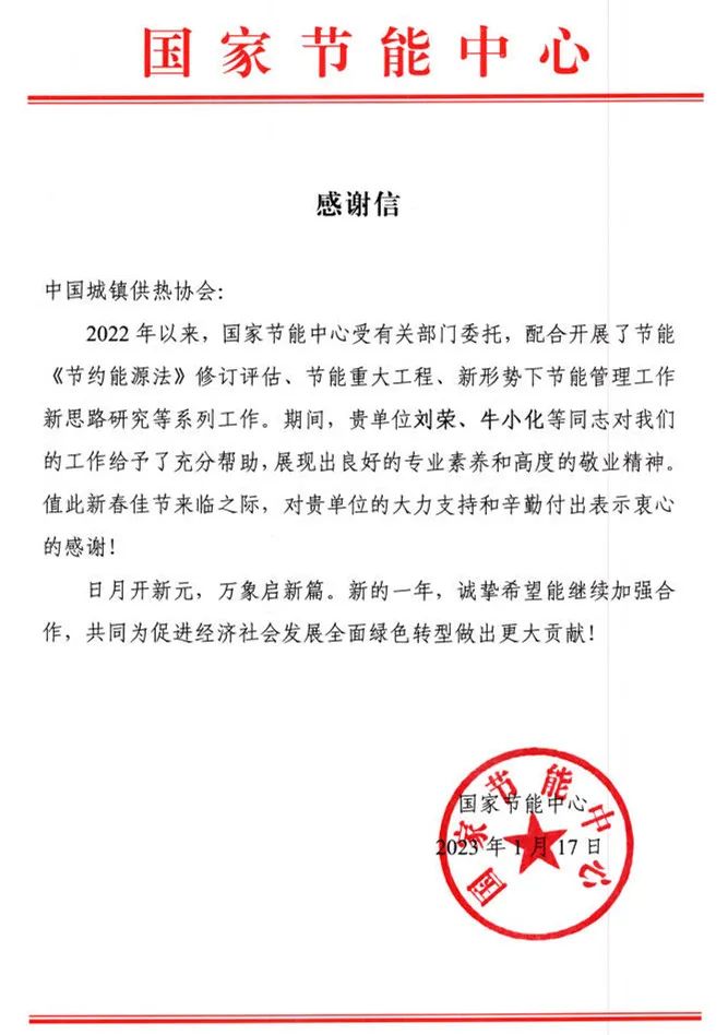 国家节能中心的一封感谢信